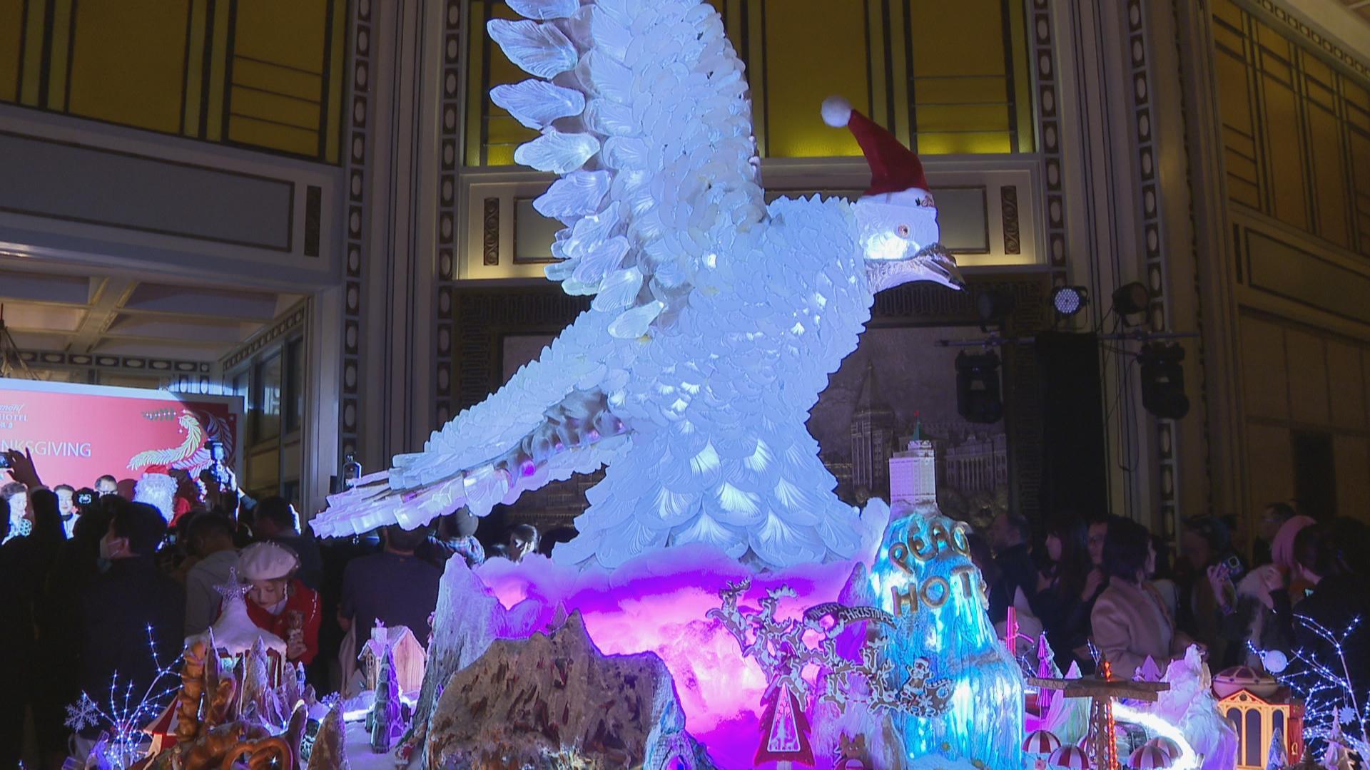 近日,上海和平饭店打造的“和平奇境”正式亮灯,让市民游客感受到了浓浓的迎新氛围,也让大家多了一个拍照打卡品美食的好去处。在酒店大堂,通体晶莹的琉璃艺术品和平鸽,衔着翠绿的橄榄枝落在正中央,围绕四周的是由国宴级厨师团队,尤其是国家级非遗传承人——面塑大师安斌精心策划设计、耗时数月打造的“和平奇境”。“和平奇境”有着琳琅满目的人物和建筑,栩栩如生地描绘出一幅雪落小镇、圣诞洋溢的温馨画面。一棵极富特殊含义的圣诞树,是电视剧《繁花》剧组特别赠送给酒店的礼物,这部巨作在上海和平饭店的多处经典角落取景拍摄,也将上海和平饭店的传奇故事与这棵独一无二的圣诞树相互融合,在传奇里诉说着温馨。