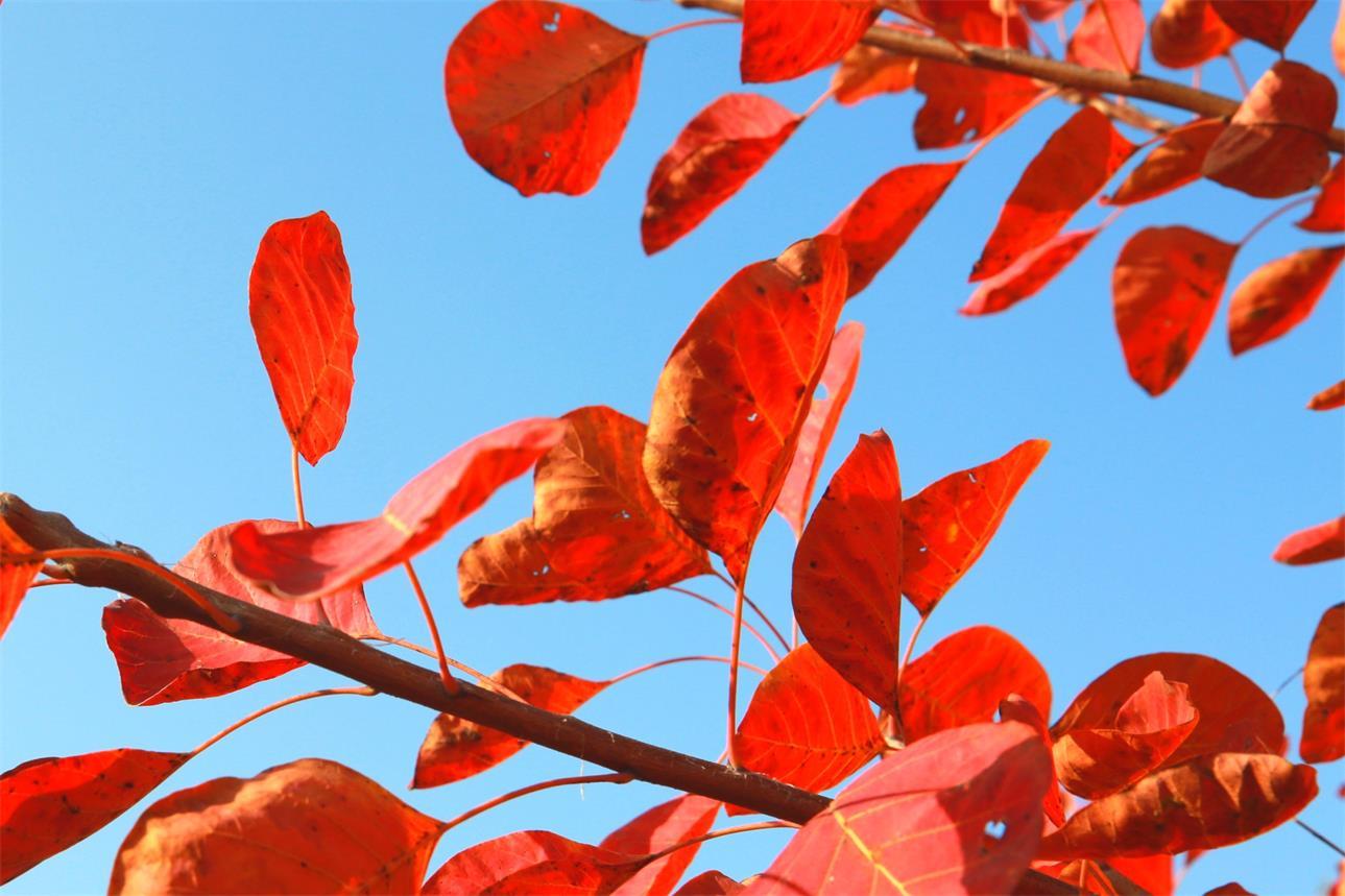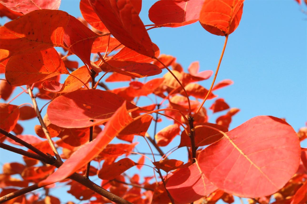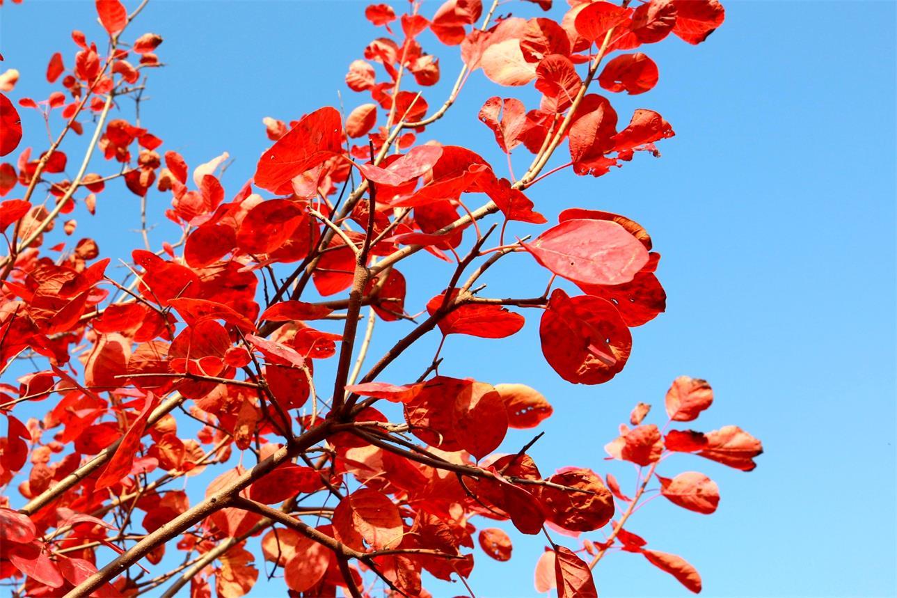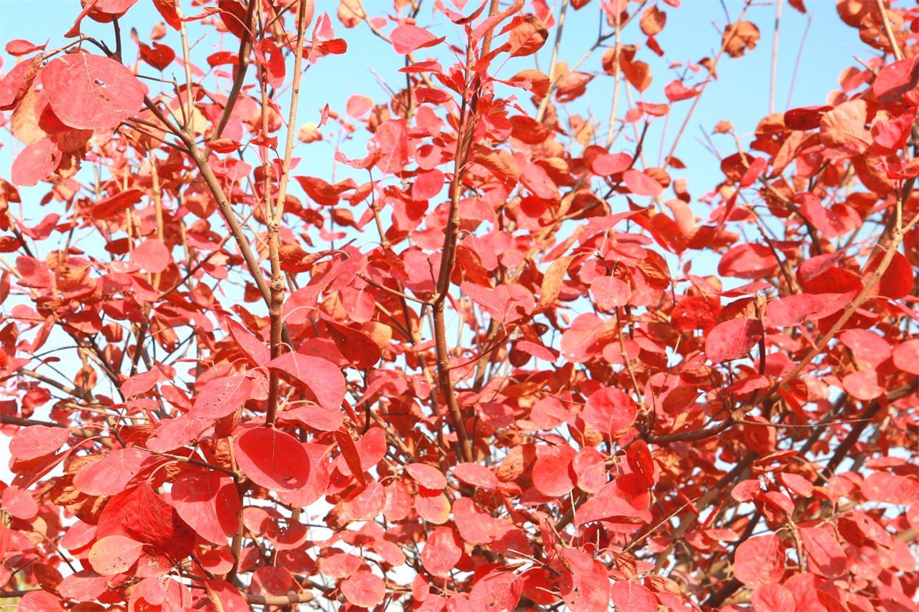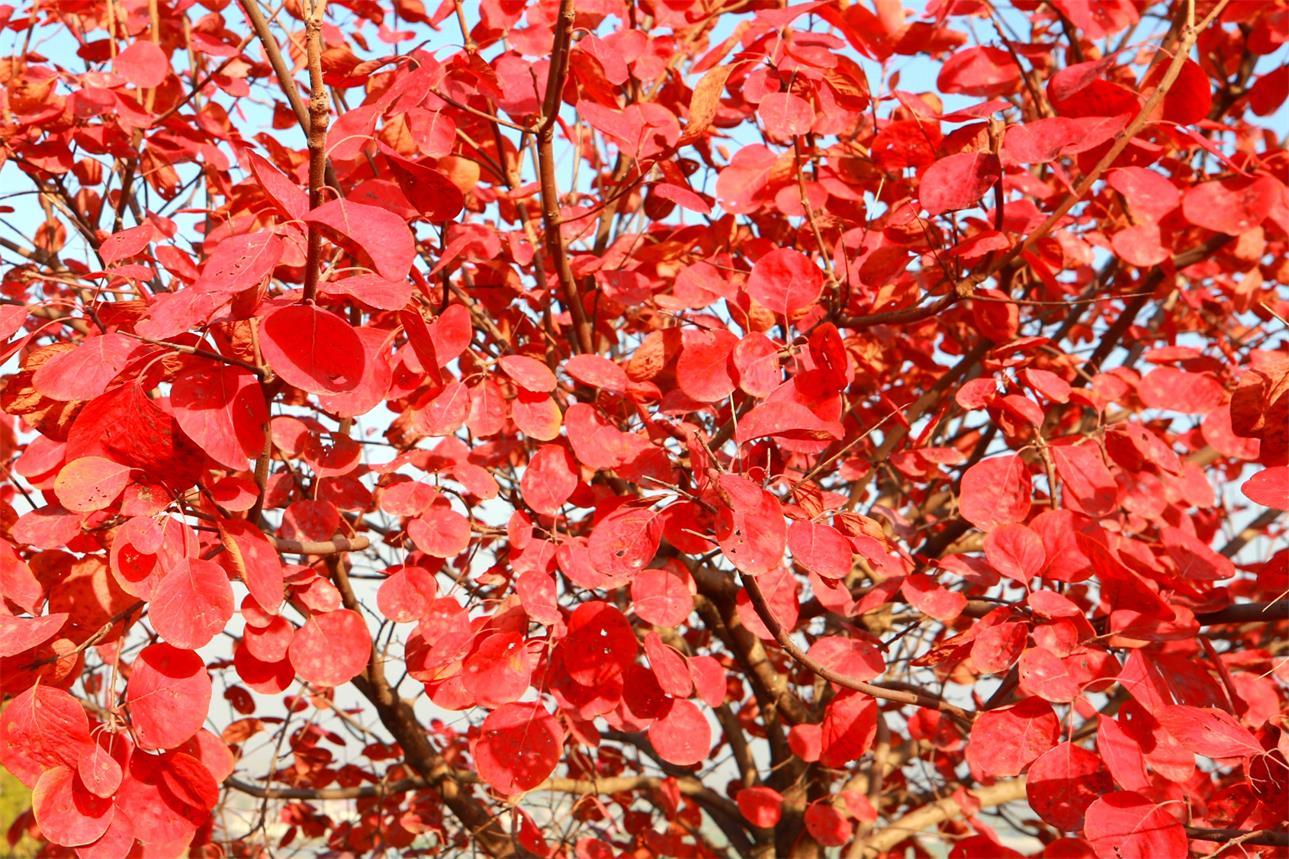 枣庄市台儿庄区涧头集镇憩园风景区漫山遍野的黄栌正红,成为一处处美丽的风景,让人流连忘返。