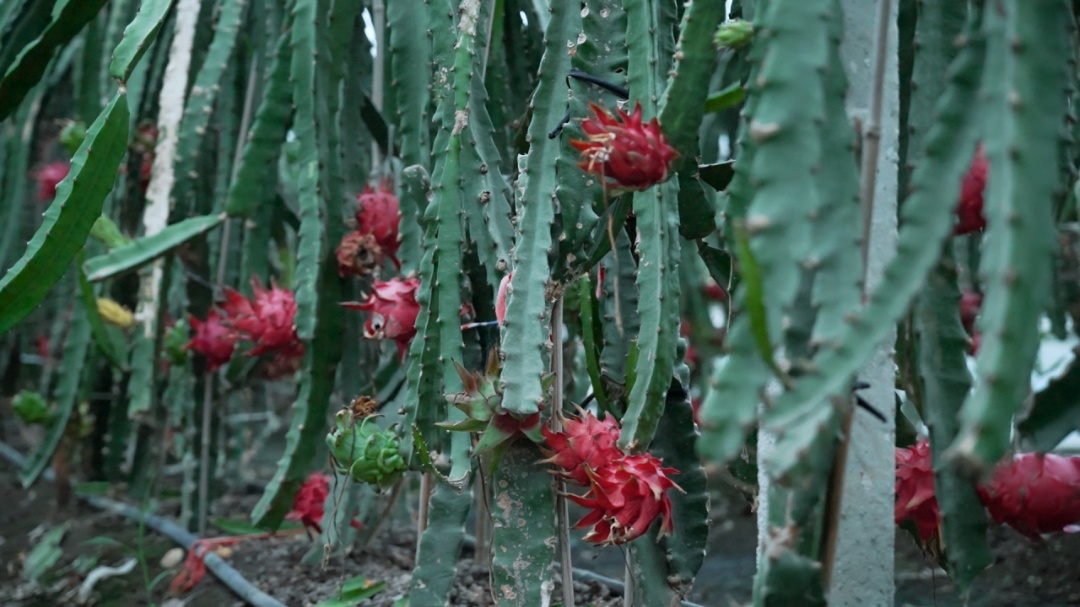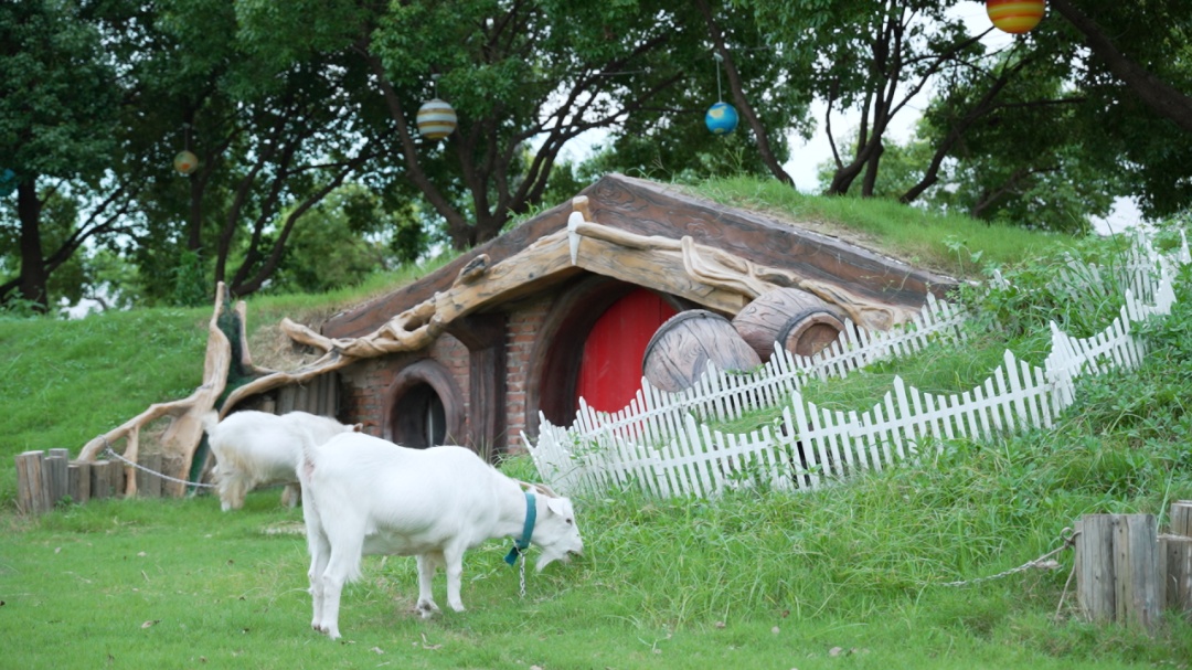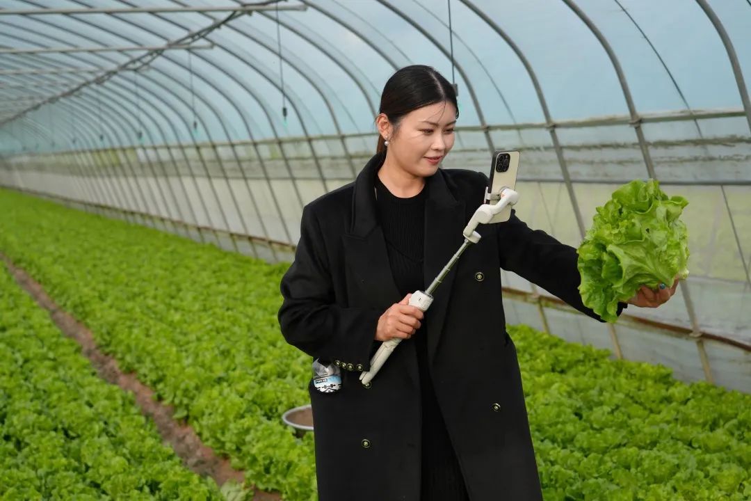 手机画面里出现了田间地头,一排排暖棚排列在道路两旁,碧绿的生菜整齐地排列着,火红的火龙果在藤蔓上向你挥手!还有两块占地6000平方米的大草坪,配套有特色的游乐设施,如色彩斑斓的小火车、可爱的“霍比特的小房子”等,张思玉用手机在直播平台上一一展示着。