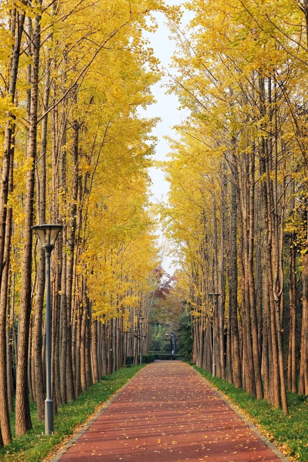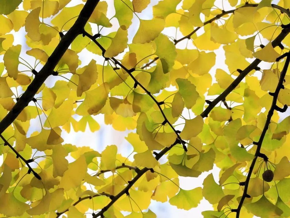 银杏的叶子呈现好看的扇形,中间常有一个缺刻,又称二叉状裂。银杏树干笔直,树型优美,春季叶色嫩绿,在秋季则变成金色。当金黄的银杏叶铺满大地,请拥抱秋天留给大地最后的温柔。