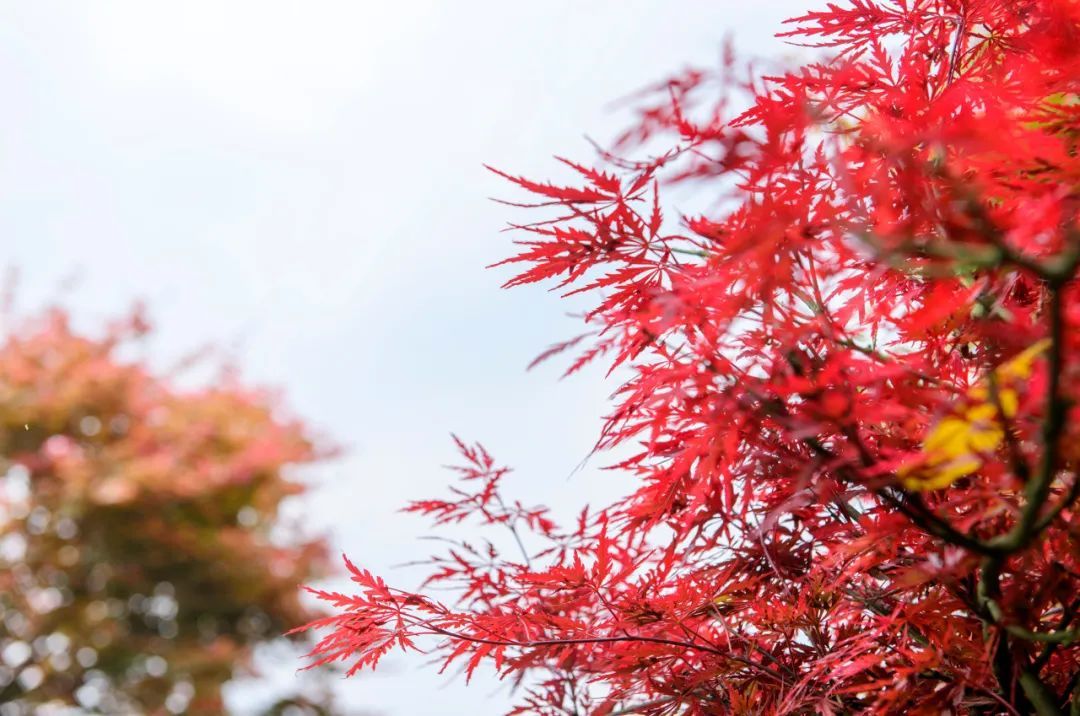 公园里还常见到鸡爪槭的3个品种,红枫Acer palmatum ‘Atropurpureum’、羽毛槭Acer palmatum ‘Dissectum’和红羽毛槭Acer palmatum ‘Dissectum Ornatum’,红枫和羽毛槭都可以在中山公园看到哦。红枫和羽毛槭叶子全年红色,是常色叶树种。而羽毛槭则保持着跟原变种同样的变色规律,即在秋天才转为黄色和红色,是秋色叶树种。之所以叫羽毛槭,是因为该品种叶片呈线性裂,细细的裂片远远望上去仿佛一团柔软的羽毛,朦胧的氛围感十足。