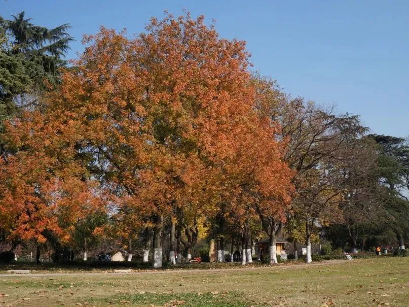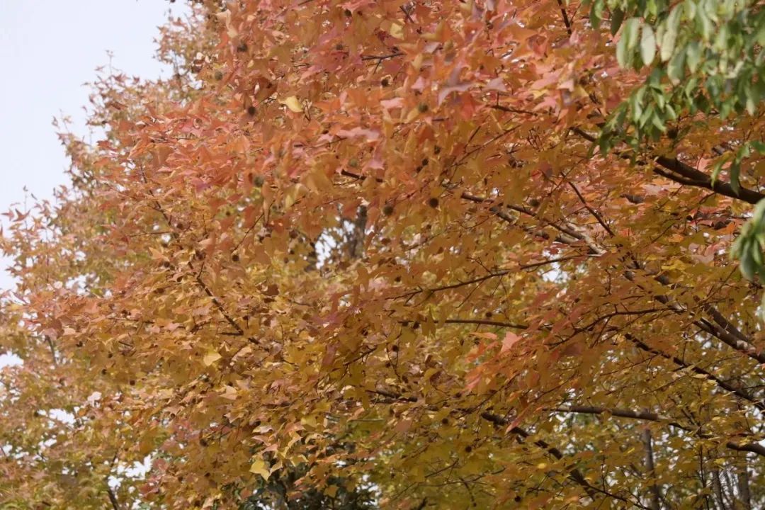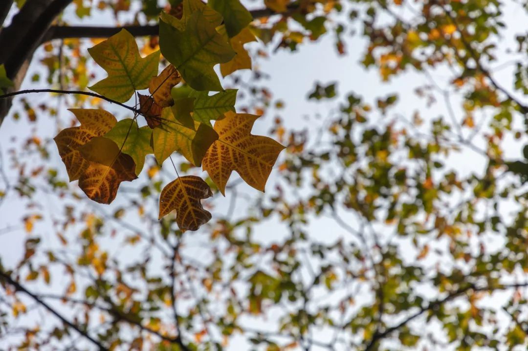 当瑟瑟寒风吹过,缓缓飘零的落叶,诉说着谁对秋天的不舍和思念?是外环林带的枫香、鸡爪槭?是中山公园的羽毛槭?是天中路的银杏?还是在秋天打翻了颜料盘,染红了天边的一众秋色叶树种?