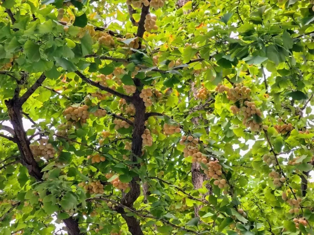 除了叶色变黄,银杏的“果”也在秋天成熟,就是我们常说的白果。实际上,白果是银杏的种子,种子外层是肉质的外种皮,让它看起来像果实。种子的肉质外种皮含白果酸、白果醇及白果酚,这是白果酸臭气味和毒性的来源。在采摘白果的时候,要注意不要接触外果皮,以防皮肤受刺激。虽然白果是一味良药,但在采食白果的时候,一定要经过恰当处理,防止种仁中毒。