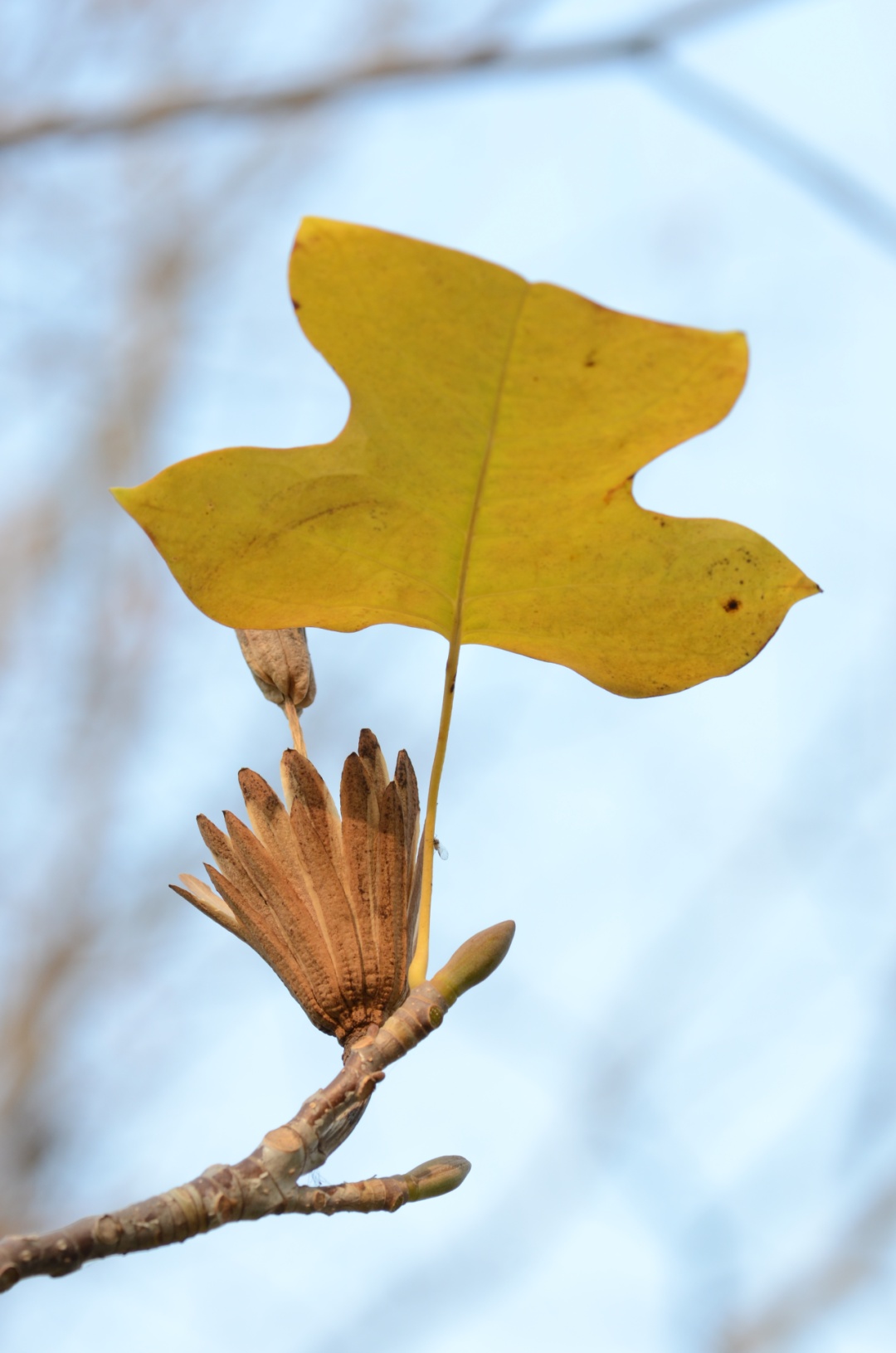 在秋天,鹅掌楸的果实跟叶子一样,也是独树一帜的美景。鹅掌楸的果为聚合果,由许多带翅的小坚果组成。当深秋果实成熟,等风来,种子便乘着小翅膀御风而去,去四方生根发芽。