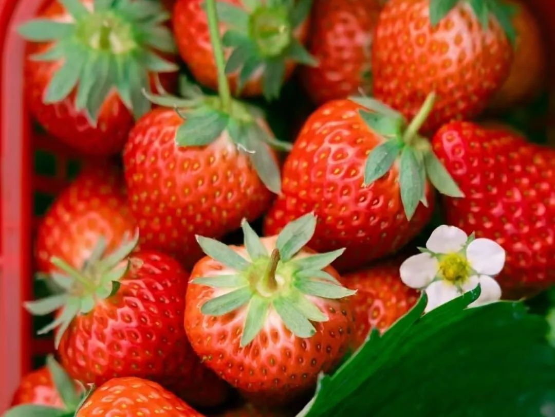 红颜草莓身形饱满,个头是一般品种的两倍,甜度也高于一般草莓品种。每一口都酸甜适口,稍微抿一抿,整个草莓就在嘴里化开,浓郁的香甜充斥着整个口腔,不管是不是草莓控,都会被它一口俘获,回味无穷。