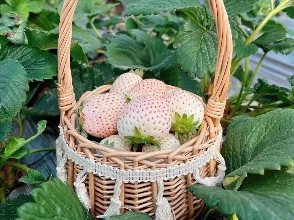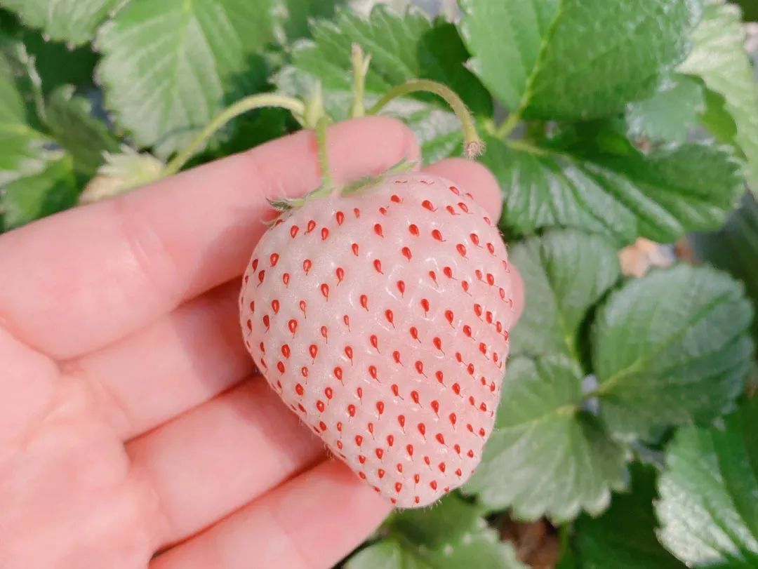 此外,生态草莓园园主介绍道:“今年,我们除了红颜、章姬外,还尝试种植了高颜值的白色草莓——淡雪。”
