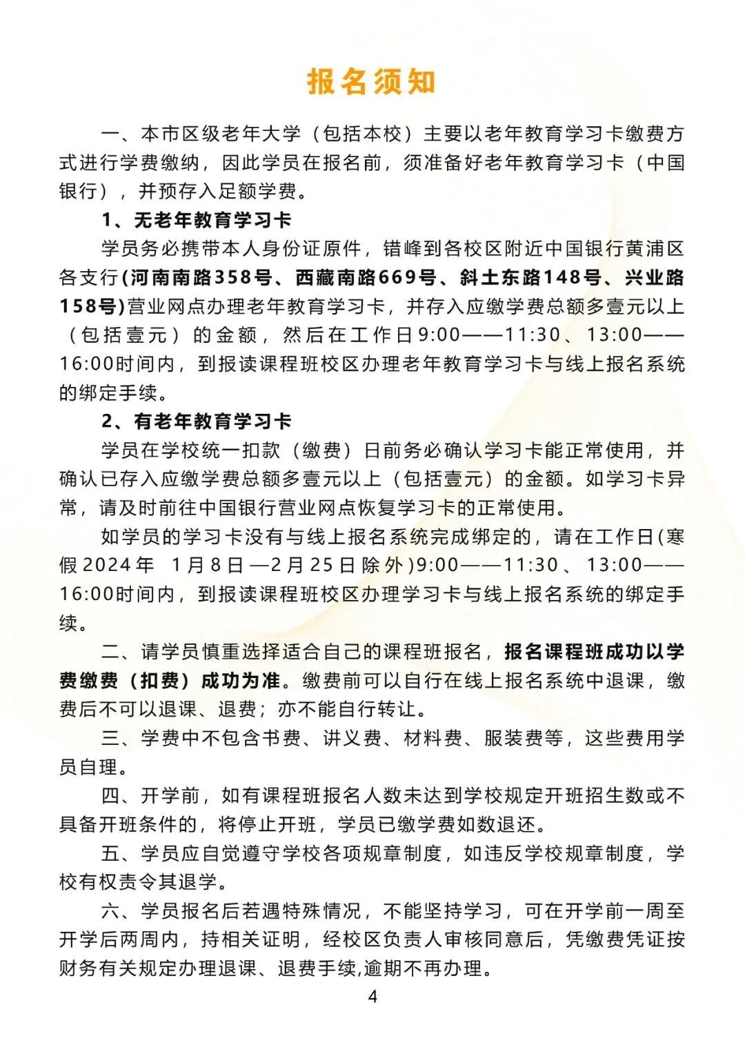 上海黄浦区老年大学2024春招生简章