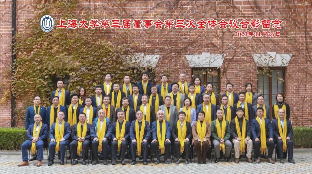 11月26日,上海大学第三届董事会第三次全体会议在上海大学延长校区乐乎楼乐论厅召开。“七一勋章”获得者、安徽省政协原副主席、中国共产党创始人之一李大钊先生之孙、名誉董事李宏塔,宝山区委书记李晨昊,嘉定区副区长汤东英,中国银行上海市分行、中信泰富特钢集团、平安银行上海分行三家董事单位代表,来自政企商学各界的30余名董事及代表,以及校党委书记成旦红,校党委副书记、校长刘昌胜出席会议。校领导段勇、聂清、王从春、胡大伟、曹为民、沈艺,相关部处学院领导受邀参加会议。校党委副书记欧阳华主持会议。