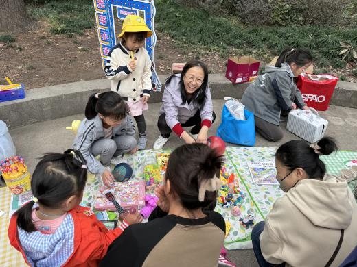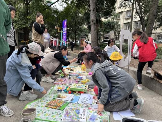 集市上,家长带着孩子、姐姐带着妹妹,纷纷将带来的物品摆了出来,类别琳琅满目:创意手作、文具书刊、绘本、玩具、生活用品等,一下子就吸引了居民的围观。孩子们大多是首次参与体验摆摊,热情满满,他们和前来询问的居民们亲切交谈,物品置换、贩卖……在双方的协商中,很快实现了旧物的循环利用,成功变废为宝。