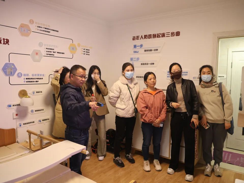 “前几天有个老年人问我,他一个人独居在家,子女不是很放心,有什么服务可以监测他的居家安全。服务点内的跌倒探测器、床头呼叫器挺适合他的,回去我就给他介绍介绍。”社区养老顾问实操体验了服务点内的各类智能产品,如让老年人起夜更安全的人体感应灯、防褥疮的多功能医疗翻身床、只需语音即可操控的晾衣架......这种模式赋予养老顾问极大的交互感、场景感和体验感,让养老顾问为老年人量身定制养老方案“更有心得”,“小”顾问发挥“大”能量。