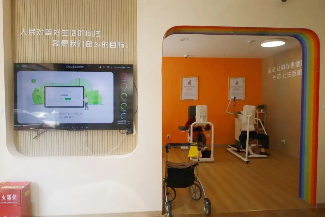 为了保障老年人运动的健康,无论在一期还是二期,顾客都可以佩戴智能手环,便于工作人员通过大屏幕实时监测老人心率,判断运动过程的安全系数,并给出专业的运动指导建议。