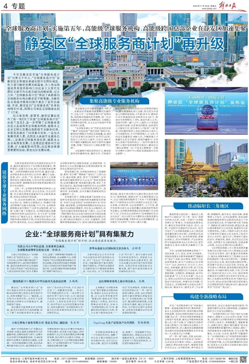11月29日 解放日报在04版专题版面 刊登了静安区“全球服务商计划”专题 《静安区“全球服务商计划”再升级》 一起来看报道全文 ↓↓↓
