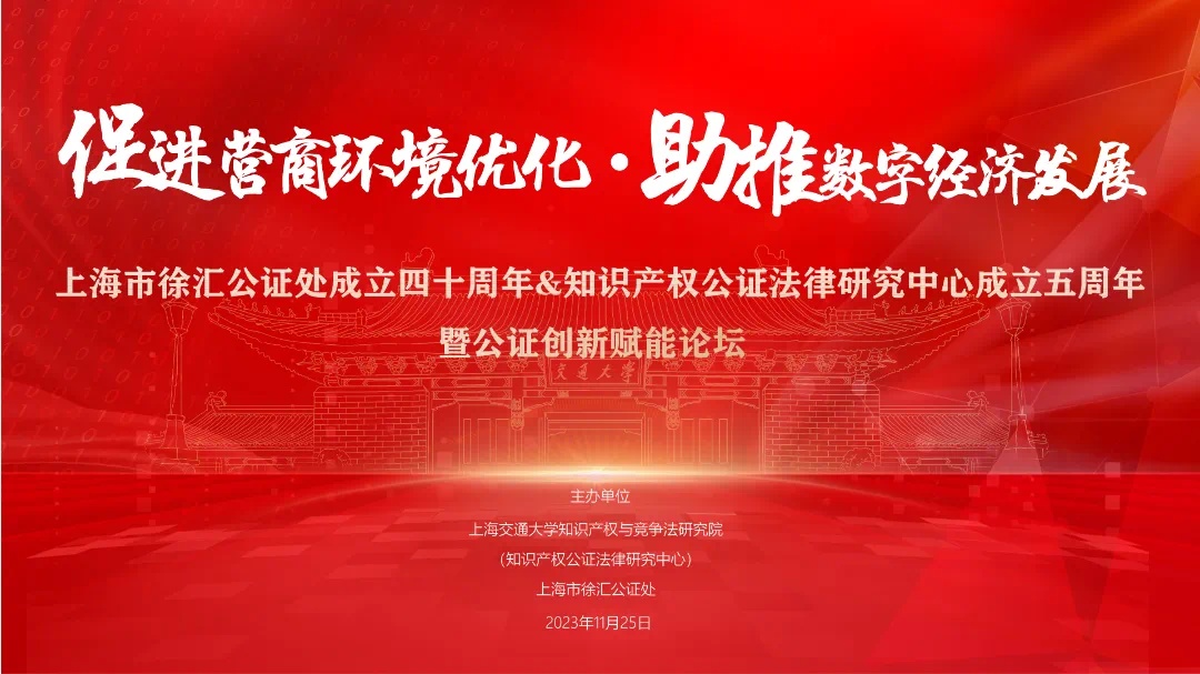 以“促进营商环境优化 助推数字经济发展”为主题,日前,上海市徐汇区公证处成立四十周年及知识产权公证法律研究中心成立五周年暨公证创新赋能论坛在上海交通大学凯原法学院圆满落幕。