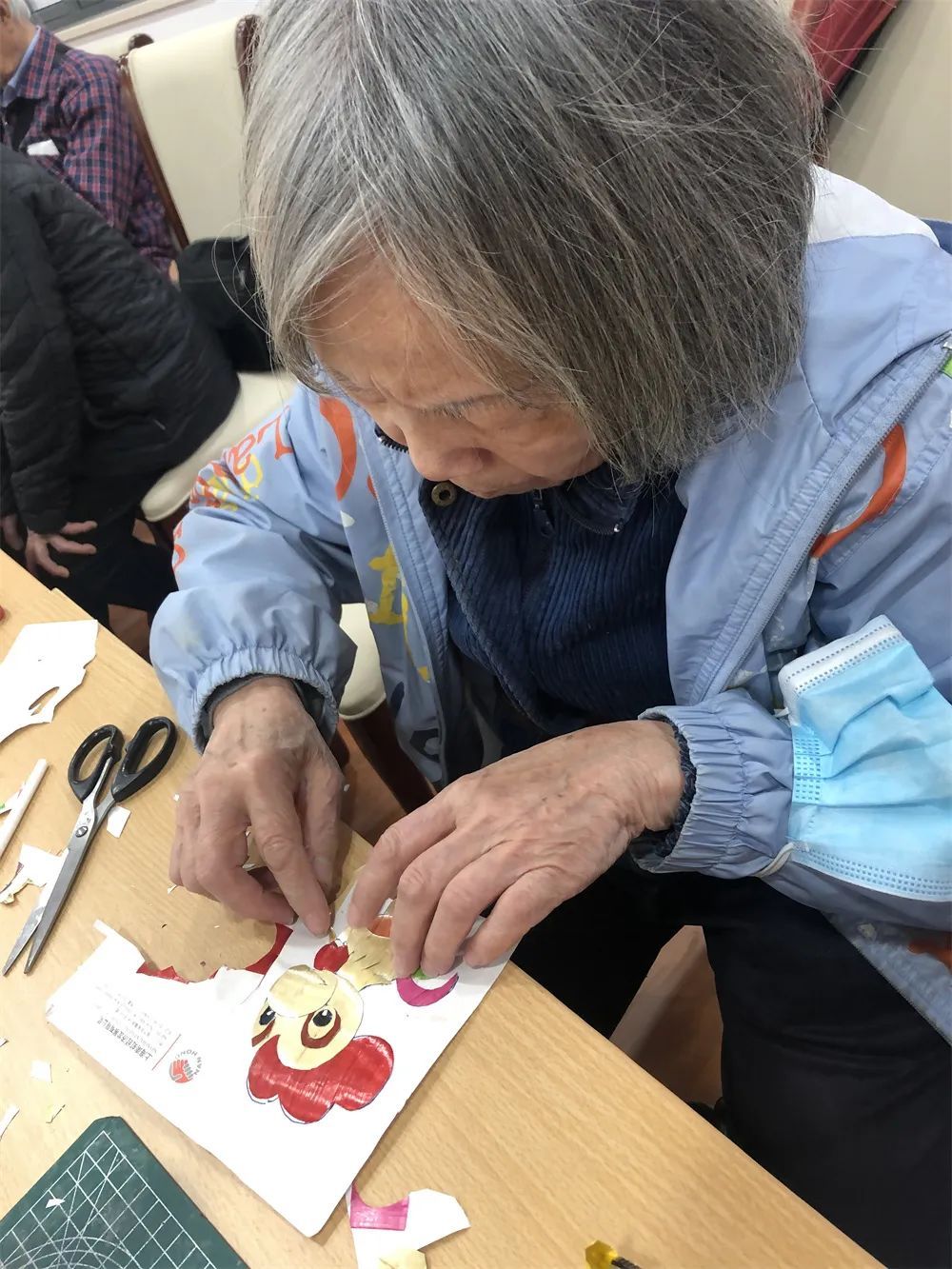 尽管创作工具只是几组麦秆、一把剪刀、一瓶胶水,但麦杆画制作起来并非易事,制作工序全凭手工完成,不仅需要细心,更需要足够的耐心。老归侨们在老师指导下,小心细致地用剪刀、美工刀等工具刻绘、剪裁、粘贴。一根根不起眼的麦秆,经过十多道工序,竟变成了一个个以十二生肖形象为主题蓝本的艺术“画作”。