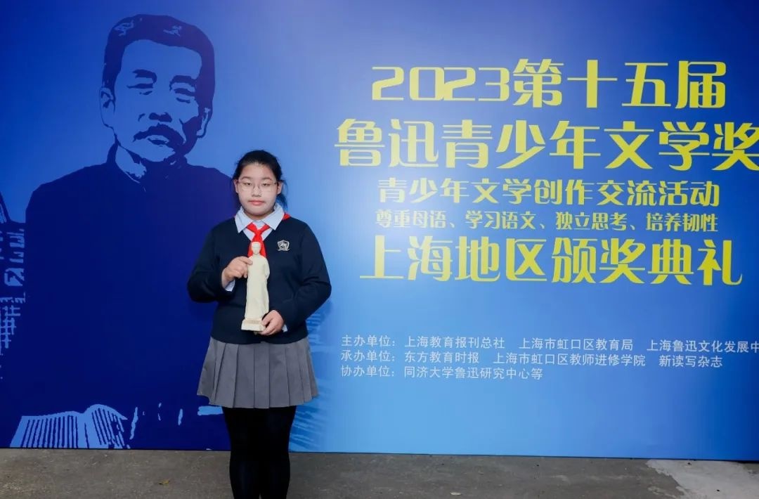 虹口区外国语第一小学四年级学生杜思怡以现场佳作《昨晚,小星星敲了敲我的窗子》获得小学组特等奖。这是杜思怡第一次参加鲁青奖的比赛,谈及获奖,她高兴地说:“我太激动了。”