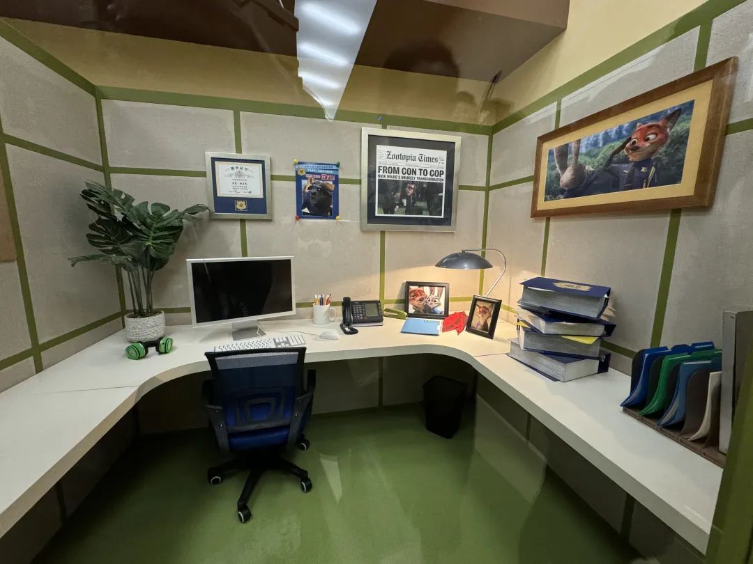 在“疯狂动物城”,城市的设施和设备大小不一,方便体型各异的动物们使用,比如,动物城站不同大小的门,真实还原了电影场景;旅鼠兄弟银行给动物们设置了不同大小的门,包括一道啮齿类员工进出银行的小型旋转门;此外,各种尺寸的长椅、桌子、不同高度的直饮水点都满足了不同大小的动物城居民的日常需求。