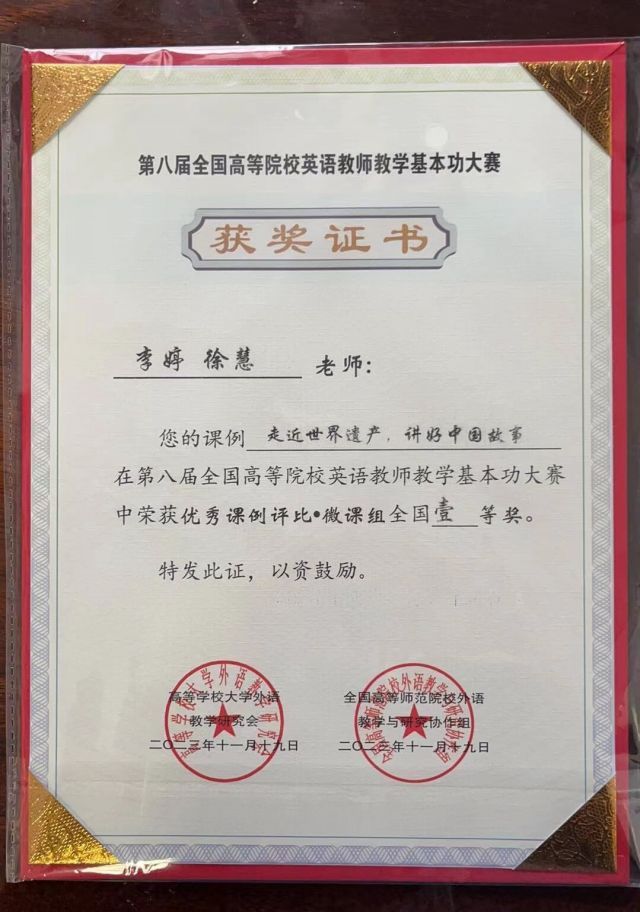 11月19日,第八届全国高等院校英语教师教学基本功大赛落下帷幕,烟台南山学院获国家一等奖2项、二等奖1项、三等奖1项,省级二等奖1项、省级三等奖2项。