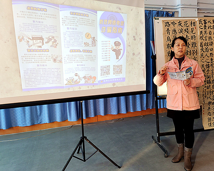 近日,在胜利油田老年大学胜采分校的课堂上,工作人员为学员们增设了一个十分钟的开课内容:反诈!守住我们的“钱袋子”。