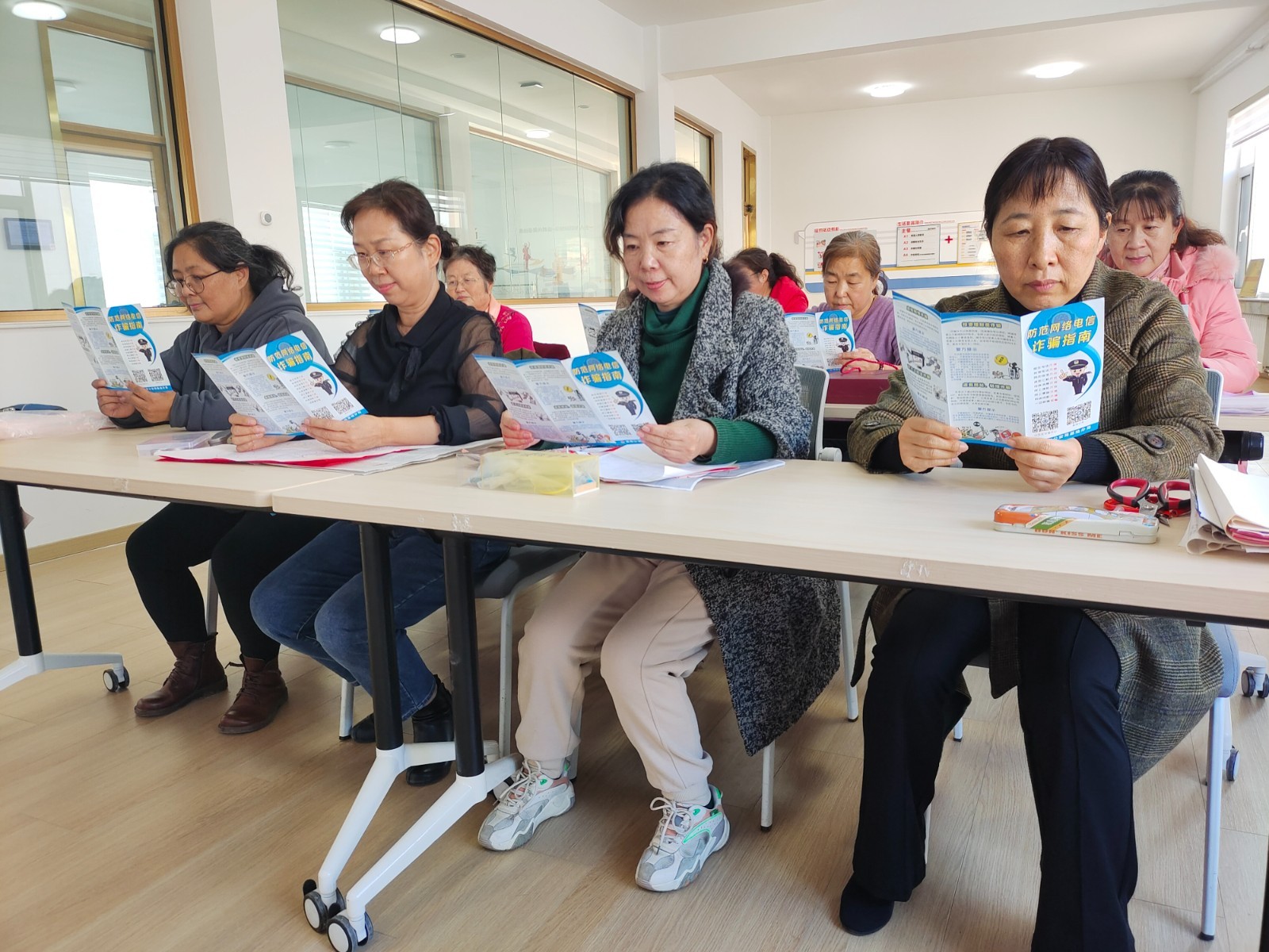 工作人员把反诈骗宣传材料发给学员,提醒老同志遇到陌生人的电话:“不听信、不转账”,不要相信天上会掉馅饼。如有冒充熟人借钱等情况,直接给亲属熟人打电话确定,或者直接拨打110进行咨询;不能随意透露私人信息、不能轻信陌生人来电、不能贪图小利、不能盲目投资转账;做到不该接的电话不接,不该点的链接不点,不给犯罪分子任何可乘之机,守住自己的养老钱。