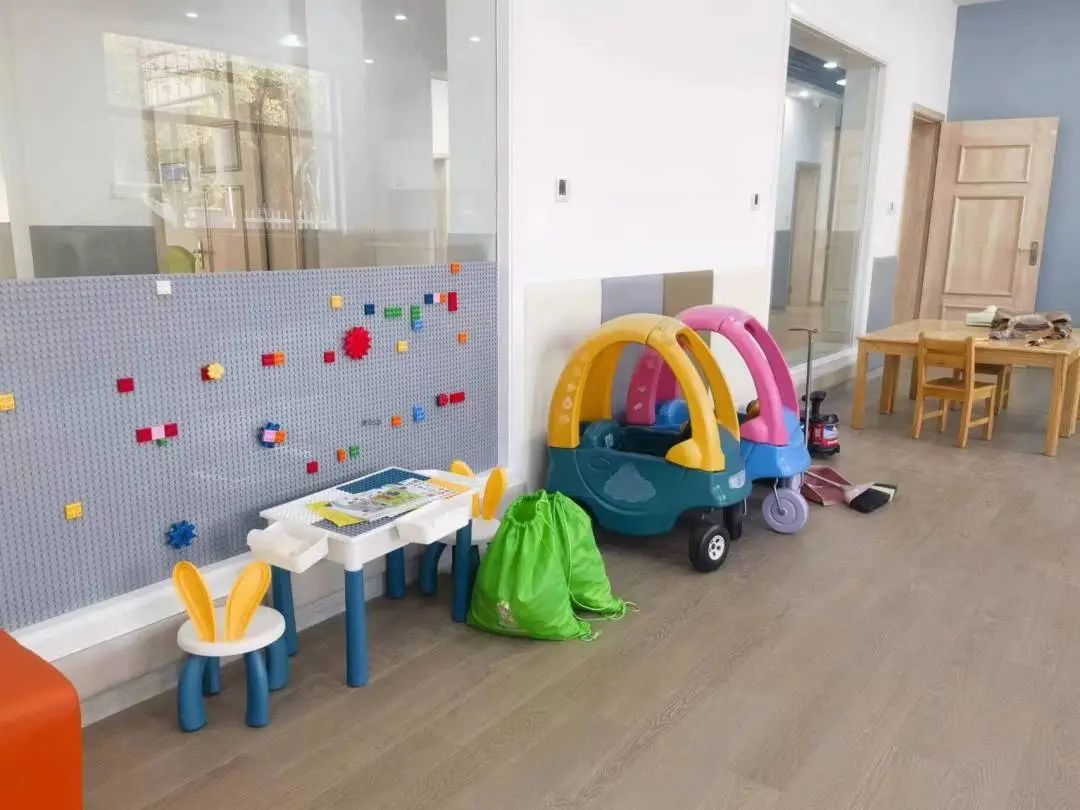 “宝宝屋”建筑面积270平方米,空间布置得十分温馨,拥有3个活动室及美工室、运动室、母婴室等专室,活动室内有益智区、娃娃家、阅读区等多个区角,为1-3岁的婴幼儿提供各类游戏玩具及设施,满足各月龄段孩子从坐、爬、走到钻、跑、跳等的成长需要,并配备专业照护人员,确保幼儿在这里获得科学、贴心的照顾。