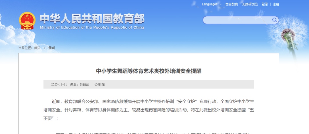 近期,教育部联合公安部、国家消防救援局开展中小学生校外培训“安全守护”专项行动,全面守护中小学生培训安全。针对舞蹈、体育等以身体训练为主、较易出现伤害风险的培训活动,特在此做出校外培训安全提醒“五不要”。