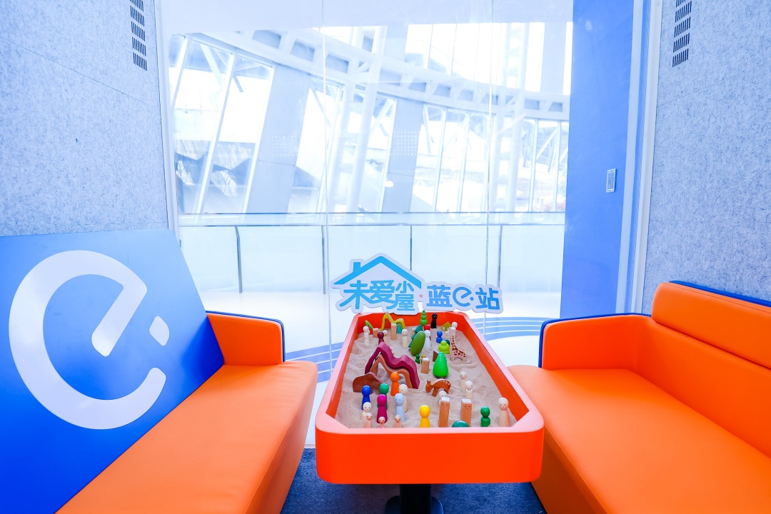 今年6月,饿了么与乐扬公益启动了“未爱小屋·蓝e站”的建设,双方计划在普陀区开展深度试点,聚焦社区未成年人心理关爱,探索儿童心理健康服务的社区化新模式,普及儿童关爱与家庭亲子教育专业服务。项目在对饿了么骑手驿站进行功能改造、升级的同时,也拥抱生态力量、整合各方资源,目前已建成8个特色各异的公益服务空间,覆盖长风、曹杨、长征、长寿、甘泉、桃浦、万里等多个街道社区。