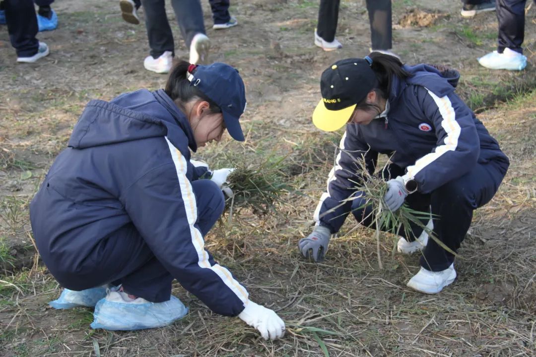 除草和犁地让同学们体会了一把“入田”之乐。大家戴上手套除草、将铁锹插入土地、多人合作拉犁。在此起彼伏的呐喊助威声中,土地被翻整得松软起来,时不时还有小青蛙出没。这对未曾见过这番景象的同学们而言,真是一份新奇的体验。