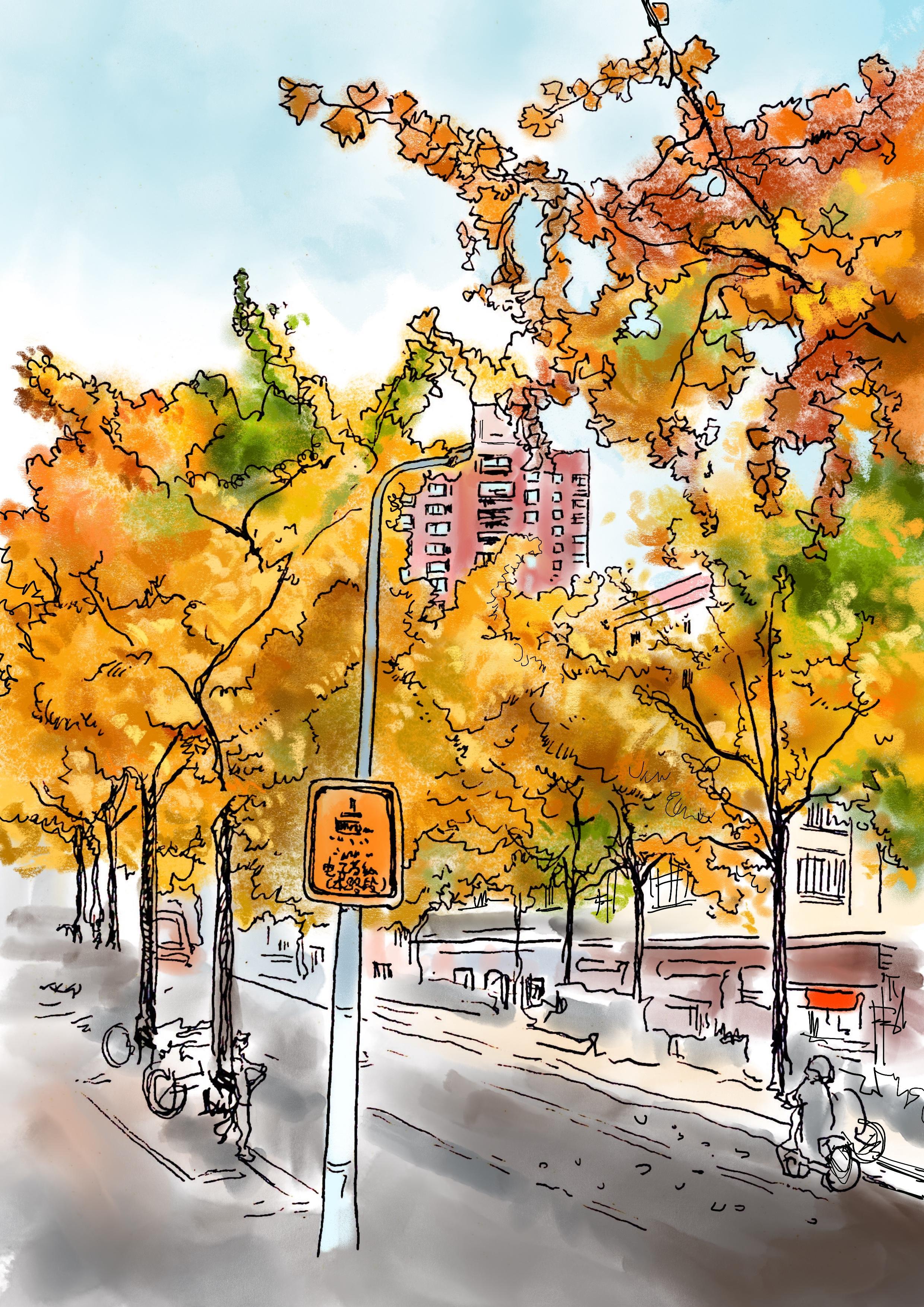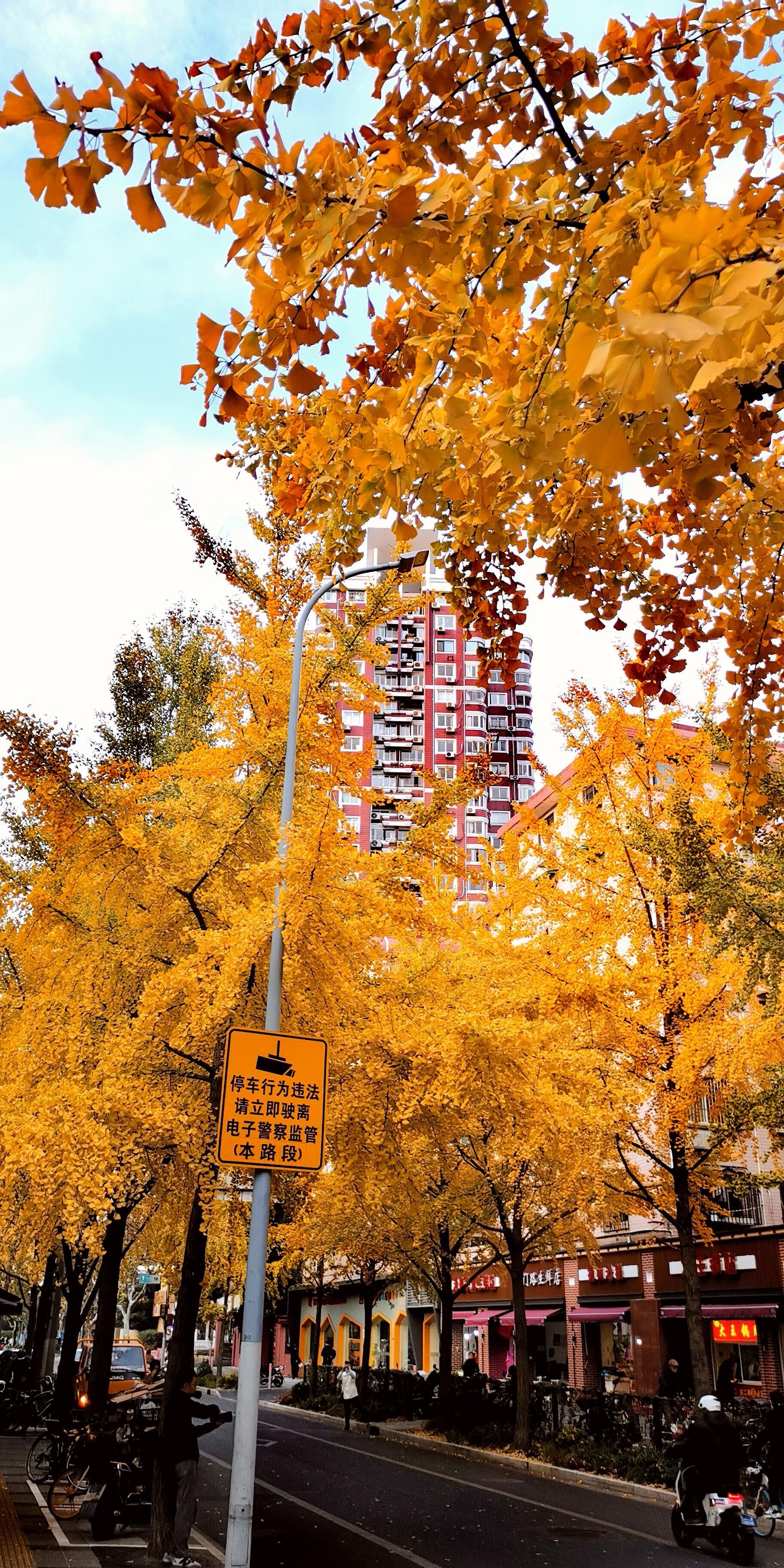 局门路附近的银杏树开得正当时、如烟花般绚丽斑斓。