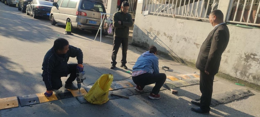 主题教育期间,街道领导在“四百”走访中发现,杜巷小区内的幼儿园门口主干道高峰期非常拥堵,不仅影响居民上下班,而且非机动车碰擦事故时有发生,影响孩子安全出行。街道领导和居民区党支部立即联系实业公司、物业、幼儿园牵头召开联席会议,共同商讨制定解决方案。组织居委和实业公司工作人员实地勘察,根据小区内道路规划,结合农民自建房实际情况,商定在大小主干道两侧、T字路口以及亭子泾桥两侧安装减速带,在事故易发点安装警示牌,转弯角广角镜维护更新。
