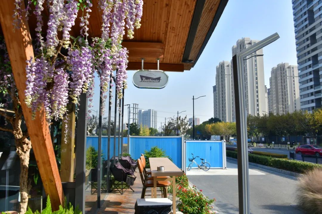 园艺中心还有一个好听的名字——Tree house(树屋)。走进其间,处处绿意盎然、花团锦簇,丰富的植物尽显“都市森林”的设计理念。室内绿植盆栽与空间布置融为一体,还设有宣传书柜、休憩桌椅、咖啡吧台等,二楼推窗远望更是风光无限好。室外则主打开放式,连接绿地步道景观,融入居民休憩散步日常,带人穿越都市喧嚣,回归自然本真。