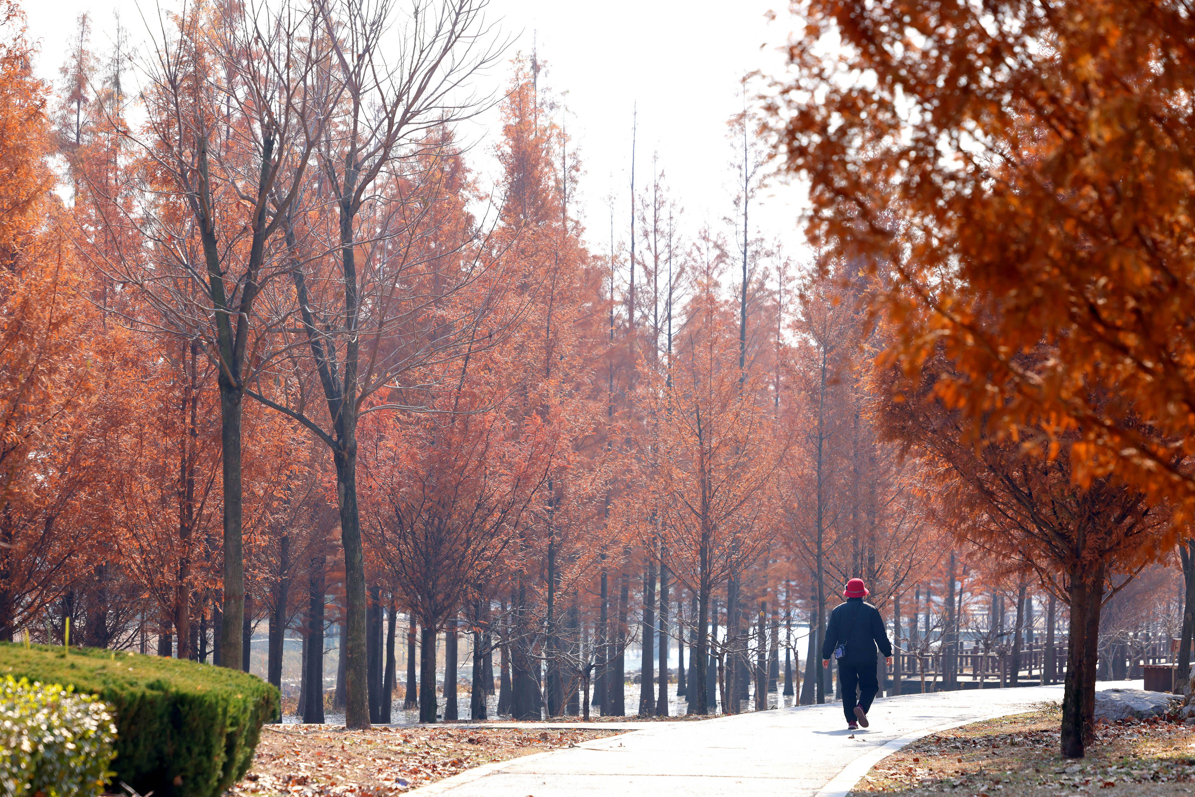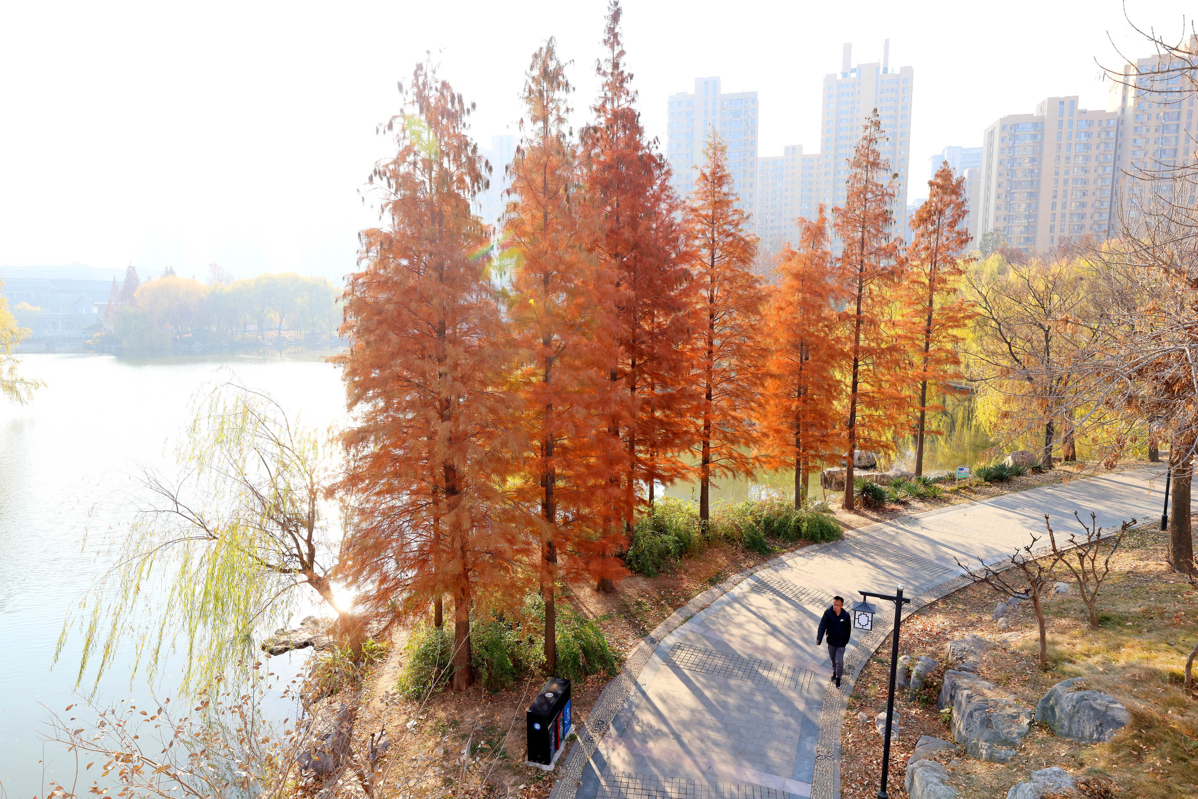 12月2日,初冬时节,鲁南大地层林尽染、色彩斑斓,景色如画。