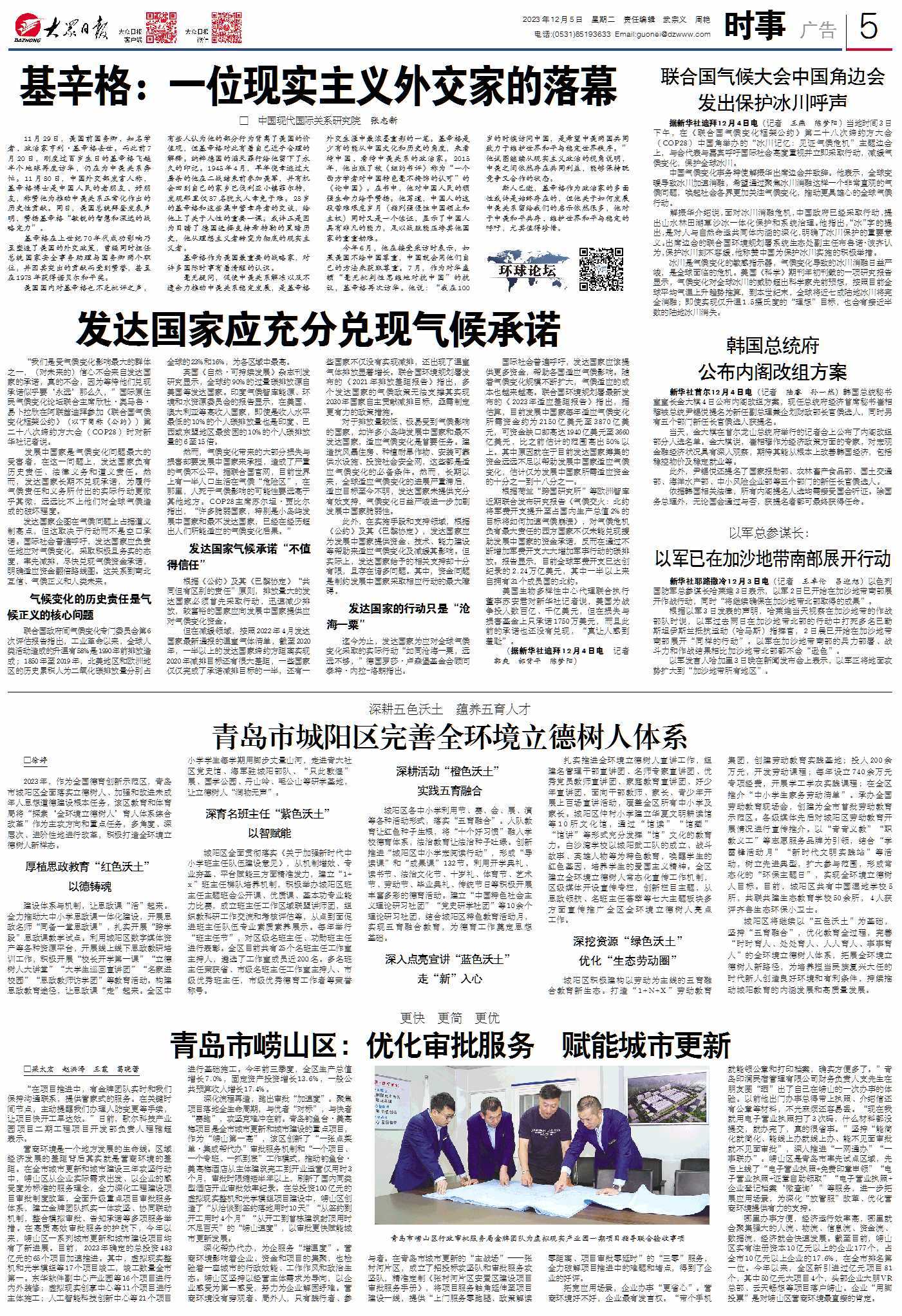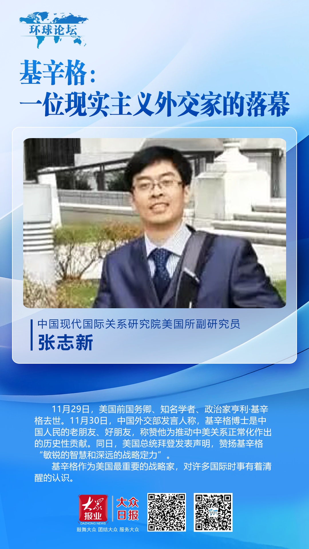 11月29日,美国前国务卿、知名学者、政治家亨利·基辛格去世。而此前7月20日,刚度过百岁生日的基辛格飞越半个地球再度访华,仍在为中美关系奔忙。11月30日,中国外交部发言人称,基辛格博士是中国人民的老朋友、好朋友,称赞他为推动中美关系正常化作出的历史性贡献。同日,美国总统拜登发表声明,赞扬基辛格“敏锐的智慧和深远的战略定力”。