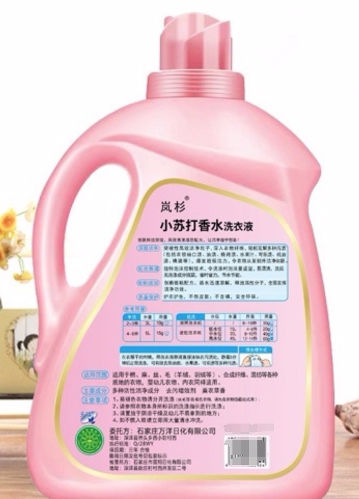 2. 标称石家庄市澜珊日化有限公司生产的香水香氛中亚良品洗衣液,主要不合格项:总活性物(备注:涉嫌假冒);