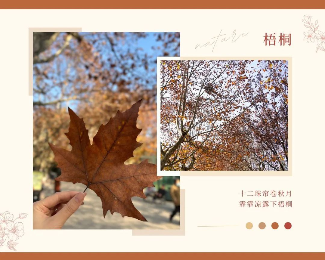 锦葵科梧桐属落叶乔木,梧桐树皮青绿色,平滑;叶心形,叶柄与叶片等长;花为圆锥花序顶生,花色淡黄;果为蓇葖果膜质,有柄;种子球形,有绉纹。梧桐喜温暖、湿润的气候,喜光,稍耐阴,不耐寒,喜肥沃、湿润的沙质土壤。