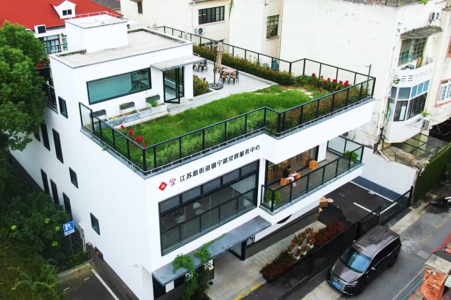 宁聚里·镇宁路党群服务中心三楼是一座屋顶花园,设有公共座椅,两三好友于此休憩闲聊,可畅享270度的开阔视野,共享生活中的惬意。
