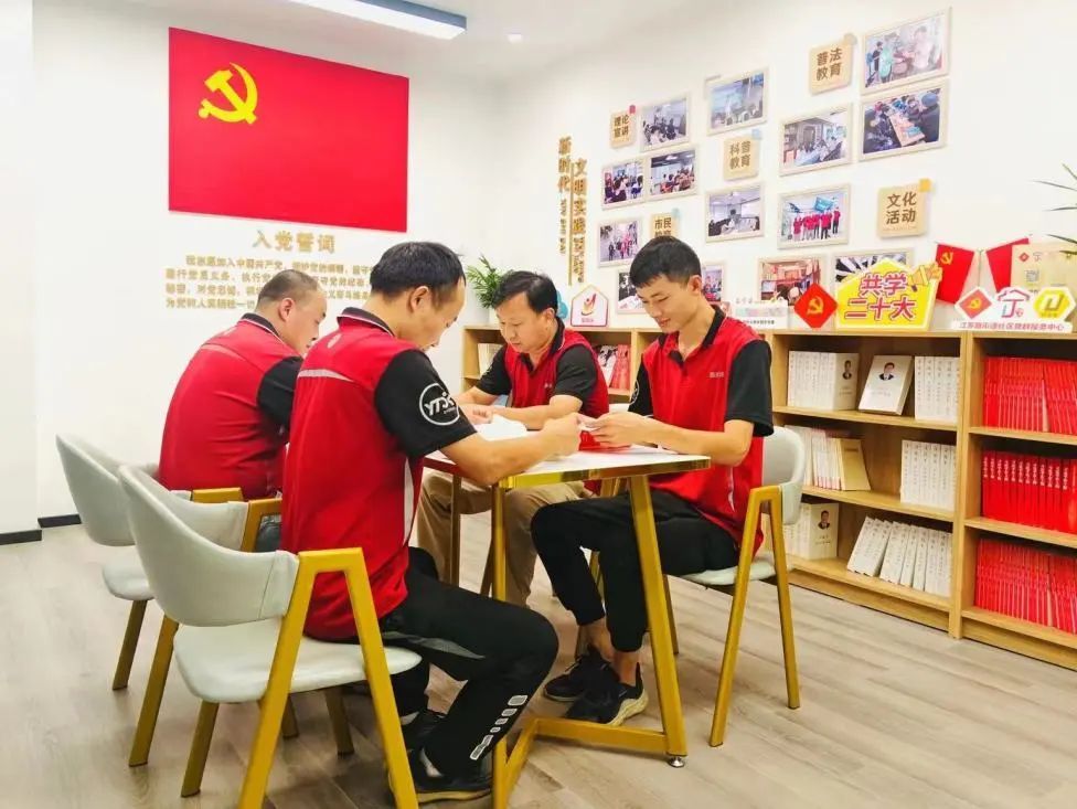“在宁聚里·镇宁路党群服务中心二楼,组织生活室为党员学习新思想、新理论提供了便利,同时还具有社区党校、党员志愿者工作室、新时代文明实践站等功能,在此开展了“三会一课”、誓词教育等活动。”李萍告诉记者,作为离新就业群体最近的宁聚里·党群服务阵地,组织生活室还能为新就业群体提供“三充”服务:快递外卖小哥可阅读书籍为大脑“充电”,使用充电设施为手机充电,还能为电瓶车充电。