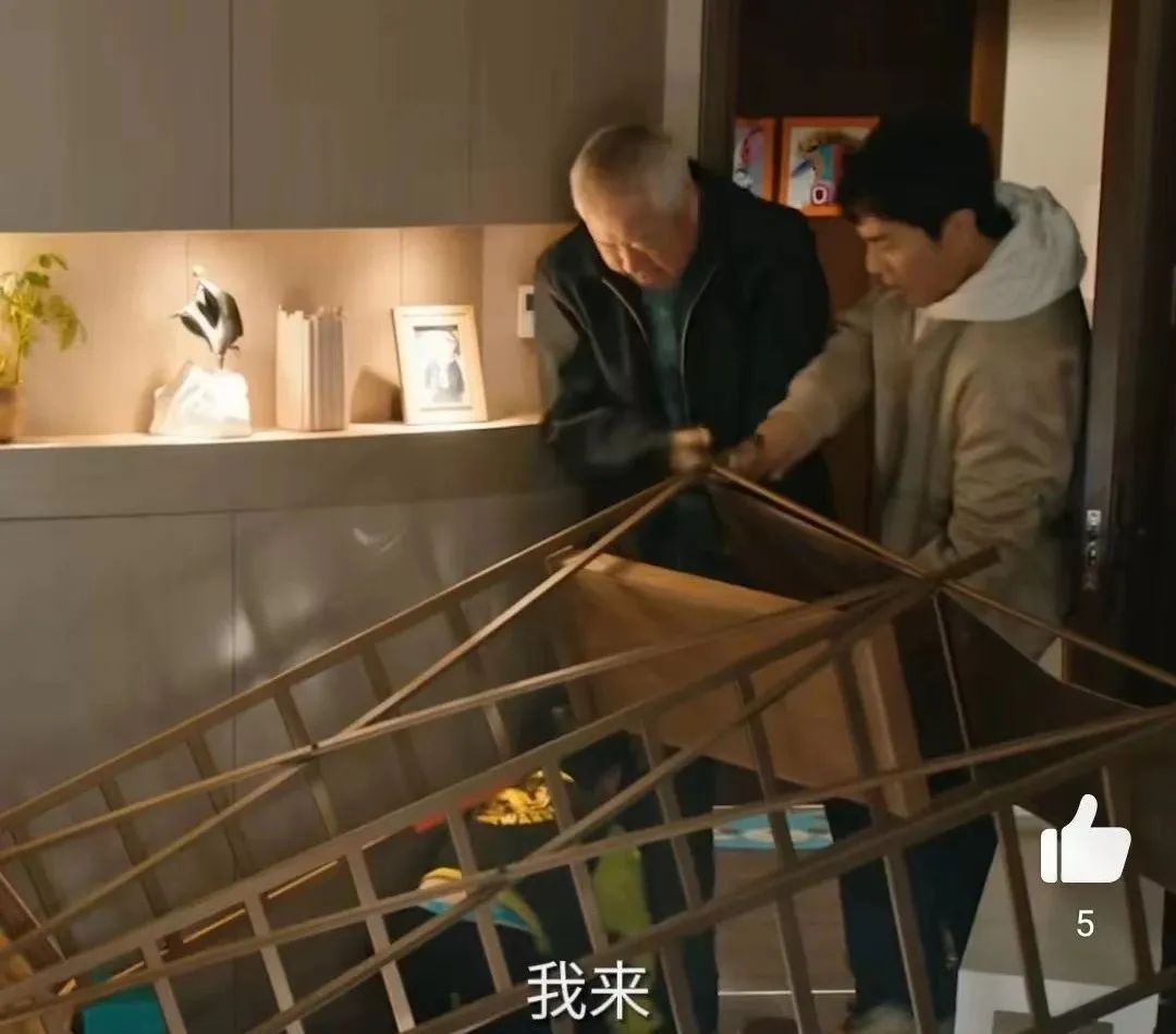 父亲没有照顾好孩子,导致孩子不小心被柜子压住了,他没有责怪父亲,而是在确认孩子没有受伤后,自己去收拾残局。