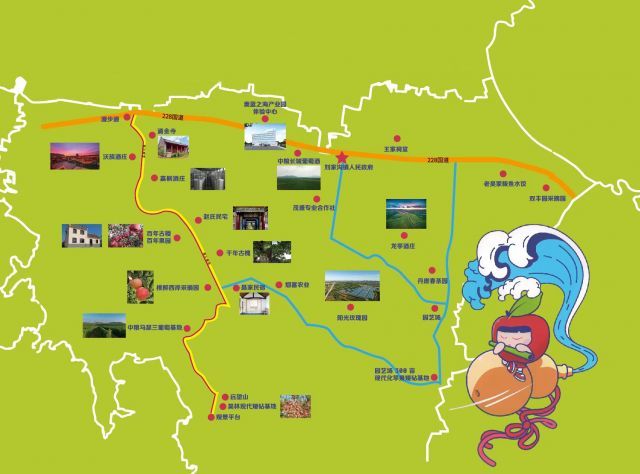 聚焦文旅融合,“集成化”驱动引领。深入挖掘刘家沟镇苹果及文化古迹资源,完善旅游配套服务,发挥“一河一路”(乌沟河和228国道)示范带作用,策划三条旅游线路,培育壮大苹果及葡萄酒文化游、特色采摘游、休闲骑行游、文化古迹游等产业,激活乡村消费市场,打造乡村旅游先行发展示范区。一是“现代农业+骑行”。打造“沃族酒庄—乌沟河漫步道—百年果园—聂家民宿—中粮龙脊园—千亩现代苹果矮砧基地”一条旅游线路,实现果品加工、食品加工、高新科技等工业产业园的招商引资或是依托环区观光大道发展鲜果采摘、旅游踏青等主题的乡村旅游,以骑行漫步道为路线,让游客在骑行穿梭的过程中深刻感受到苹果独特的历史文化和现代生产工艺。二是“葡萄风情+观光”。打造“龙亭酒庄—中粮长城葡萄酒—沃族酒庄—嘉桐酒庄—中粮龙脊园”一条葡萄酒风情旅游线路,规划布局生态农业、红酒酿造、农业观光、乡村旅游、健康养生等多种业态,通过小镇旅游带将特色酒庄串联,构成集养生康养、葡萄酒品鉴、特色酒店、户外运动于一体的旅游度假、健康文化生活体验新去处。三是“现代工业+体验”。打造“海参科普基地——美丽乡村、传统村落——农业产业基地——党支部领办合作社”一条现代工业+沉浸式乡村体验游线路,整体打造建设安香寺村到乌沟张家村的整体沿途环境,修葺历史建筑,重现古村落原貌,贯通海参博物馆和党支部领办合作社,打造中国式现代化乡村和创新式集体经济的样板。串珠成链、延链成带,珠环玉绕的精彩节点、纵横交错的三条游线,共同拉开文旅产业深度融合的崭新格局。