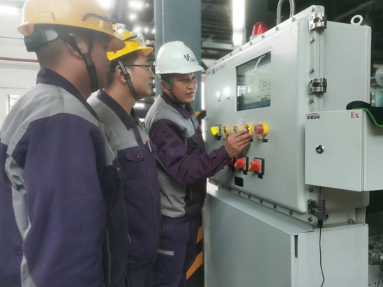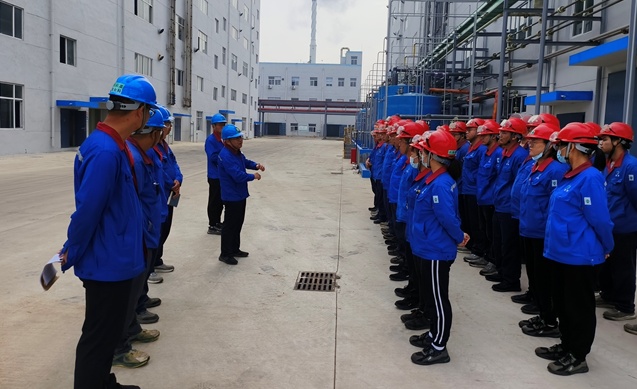 山东富康集团102车间党员宋德印在生产一线开展安全巡查