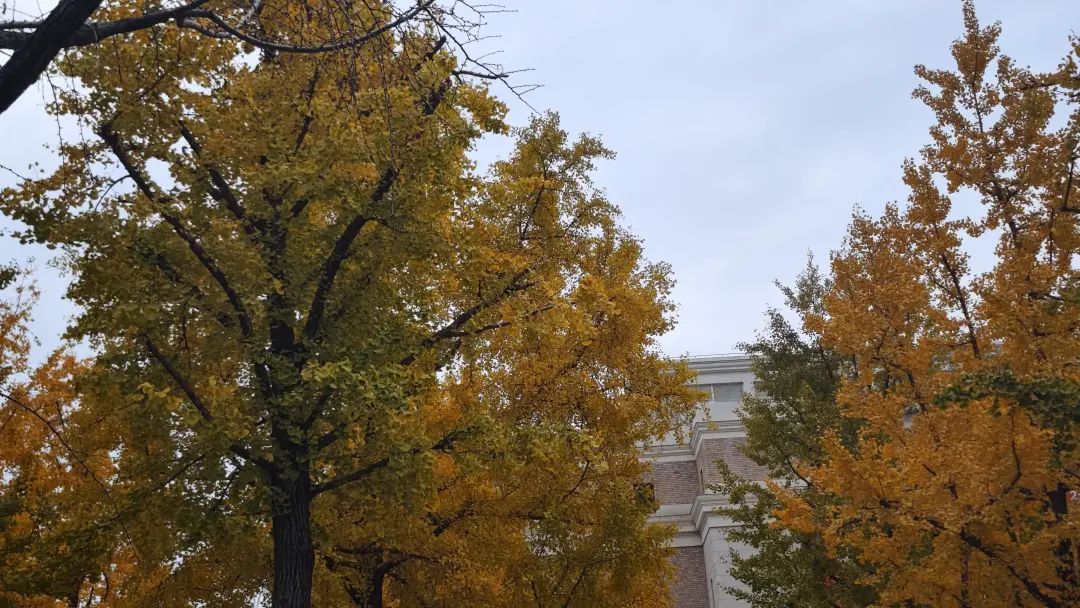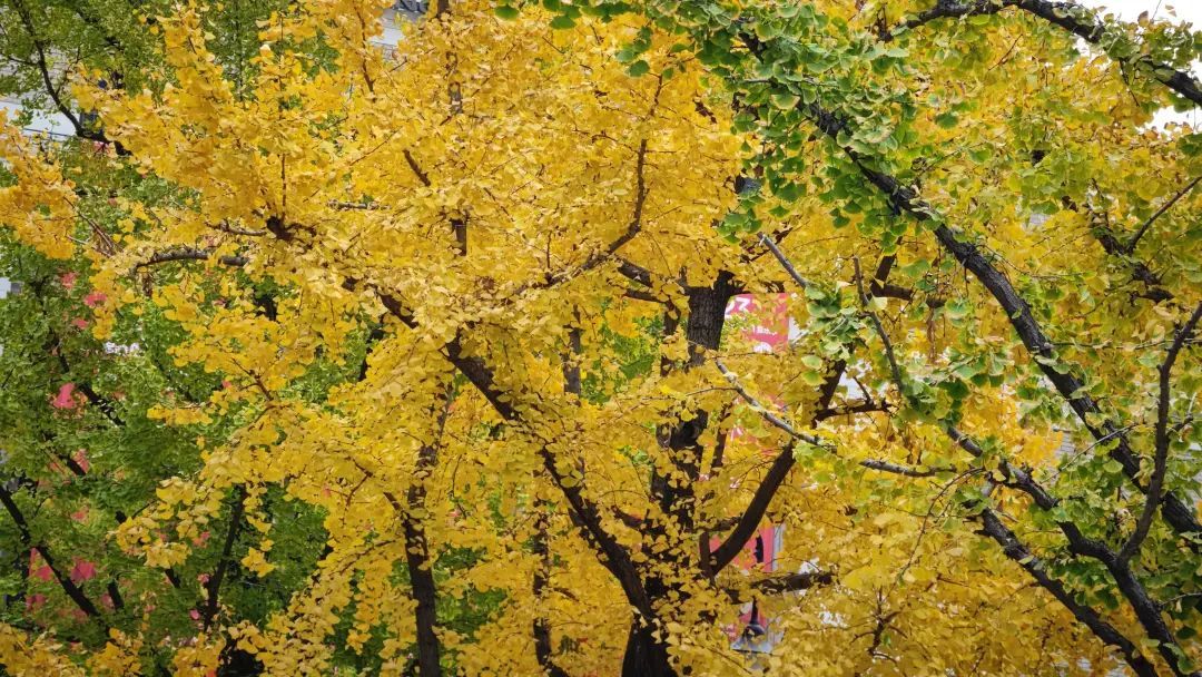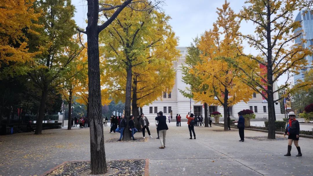 今年的天气比往年冷得晚,银杏叶子黄得也比往年更晚一些。眼下,大部分的银杏树都已经呈现金黄色的姿态,不过还有少数几棵依旧以绿色为主,青黄相间,颇有一番意境。再过上一段时间,音乐厅门口的银杏树将全部变黄,地上的落叶也会更多,绝美的银杏美景将完整呈现,成为深秋初冬里最值得按下快门的一抹金黄。