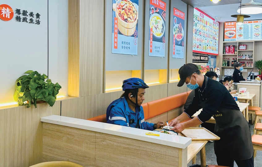 The subdistrict surveyed deliverymen and found that they needed a place to rest, recharge their phones and drink tea. To make them feel at home, the subdistrict made a deal with 24 stores to help them with food, a salon, shopping and even moped repair.