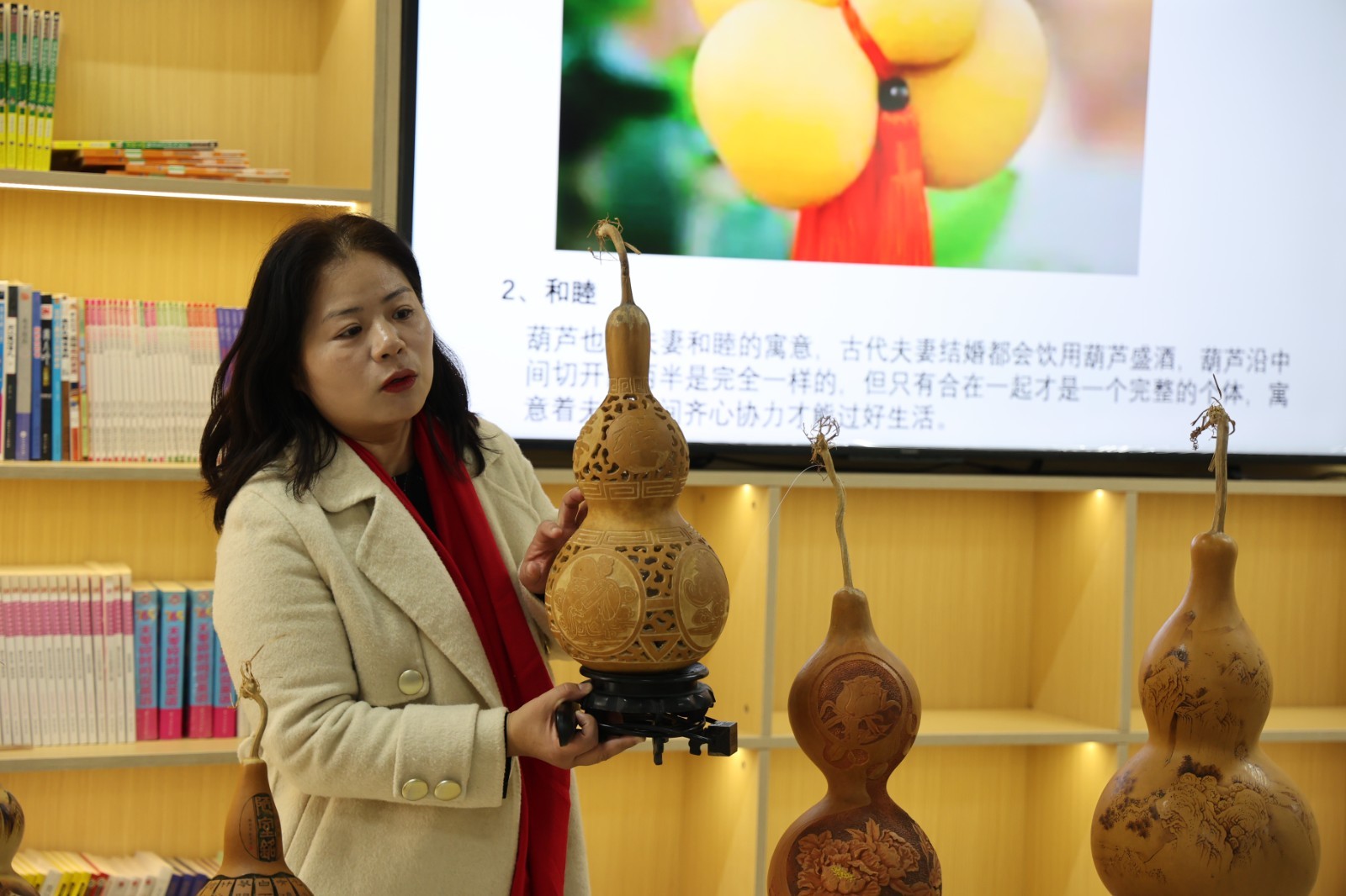 活动中,同学们听得聚精会神,不仅欣赏了各类葫芦作品,同时亲手体验烙画技能,既拓宽了知识面,让他们明白了葫芦文化源远流长,还激发学生们的民族自信,增强传承传统文化的使命感和责任感。