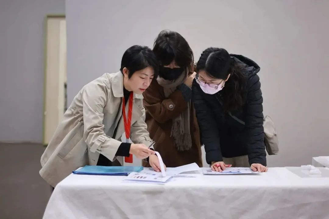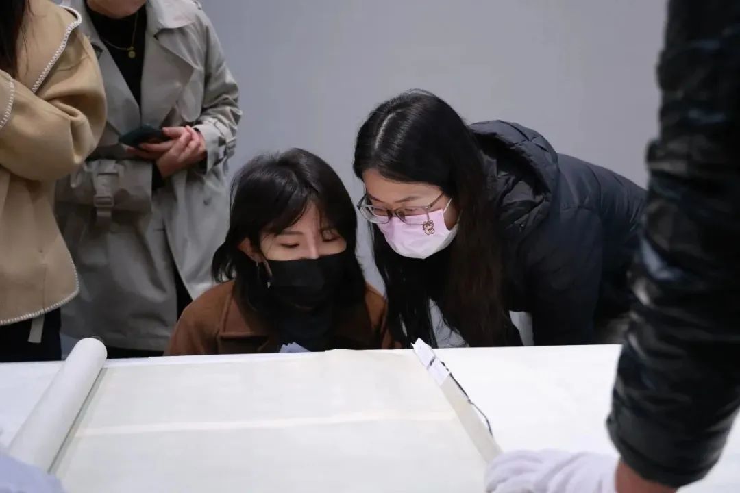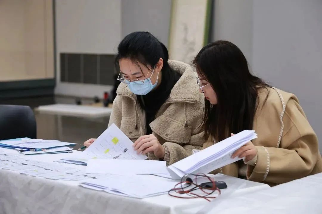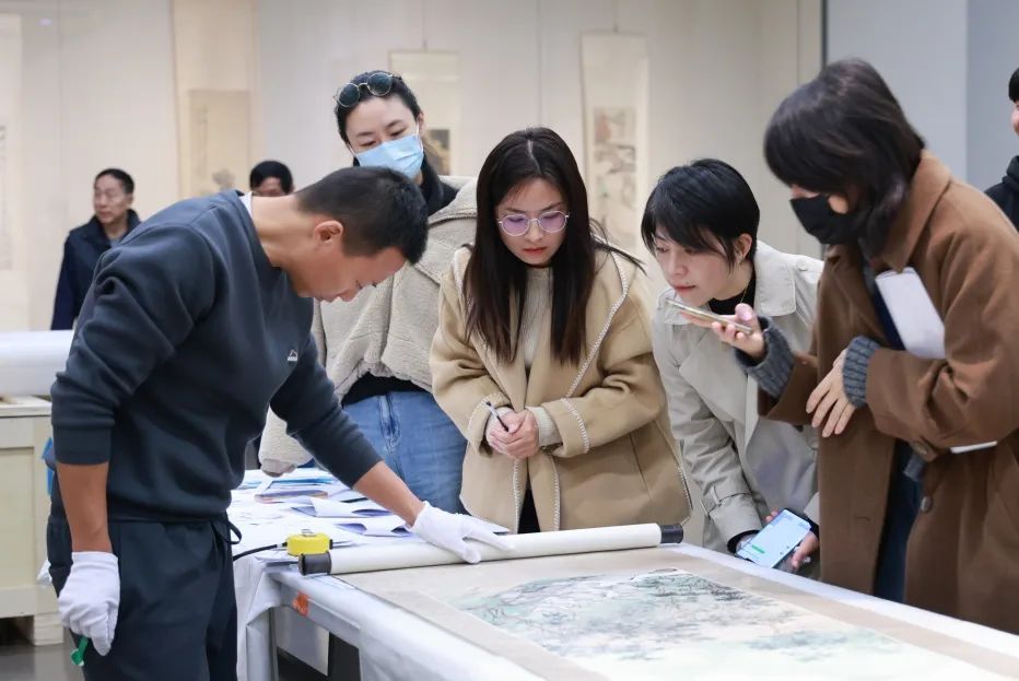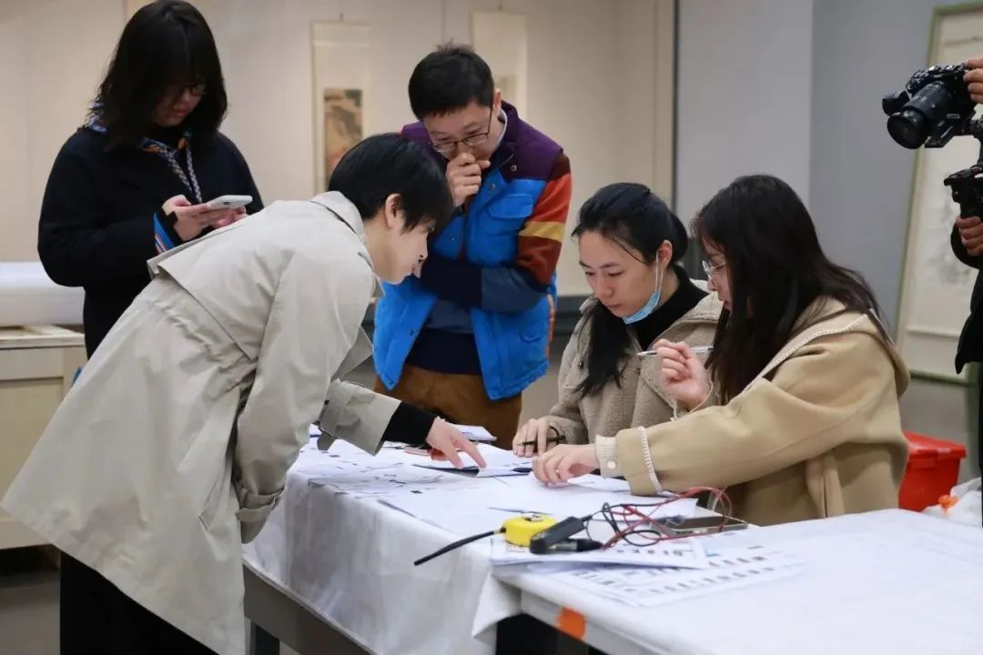 中华艺术宫(上海美术馆)工作人员与北京画院工作人员在展厅核对展品清单