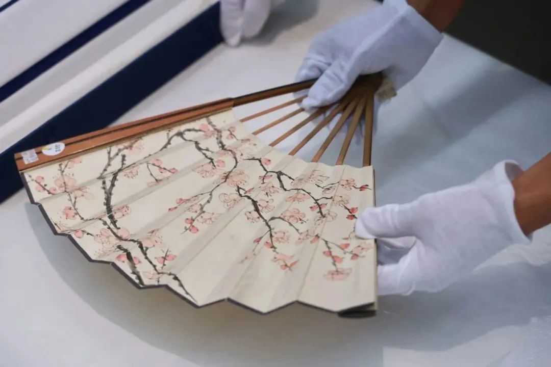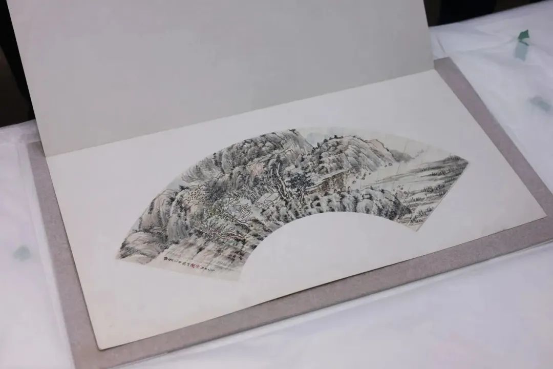此外,如蒋兆和的《春雨》因其一米见方的画幅而在开箱现场特别抢眼;姚华的《山水》、周肇祥的《绛雪寒枝》等扇面则是气韵灵动,别具一格。