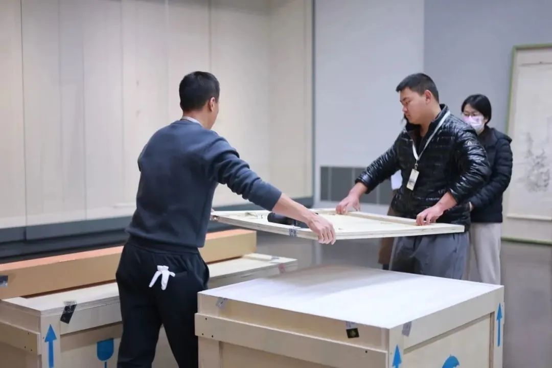 目前,展品的开箱布展工作正在紧锣密鼓地进行中。随着展览开幕时间的日益临近,一批来自北京画院的“京津画派”重量级展品已于近日完成开箱点交工作。