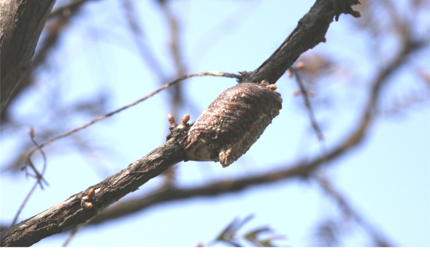 冬季树枝上的螳螂卵鞘
