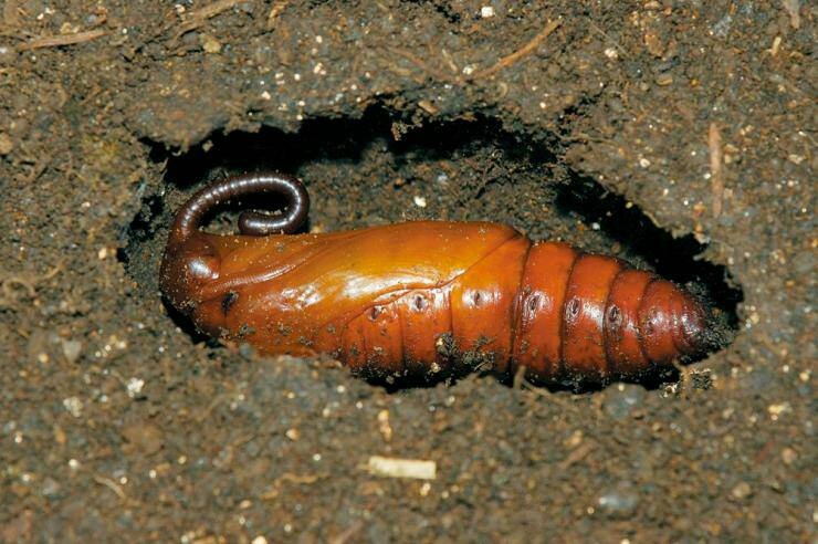 有的昆虫不太会结茧,老熟幼虫钻到地表的土层下,倒腾出蛹室后直接化蛹,舒服地利用厚厚的土层隔绝严寒躺过冬天。