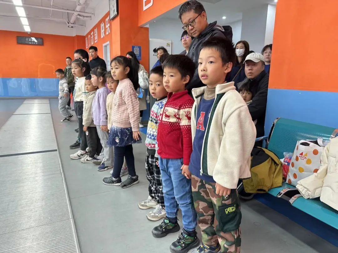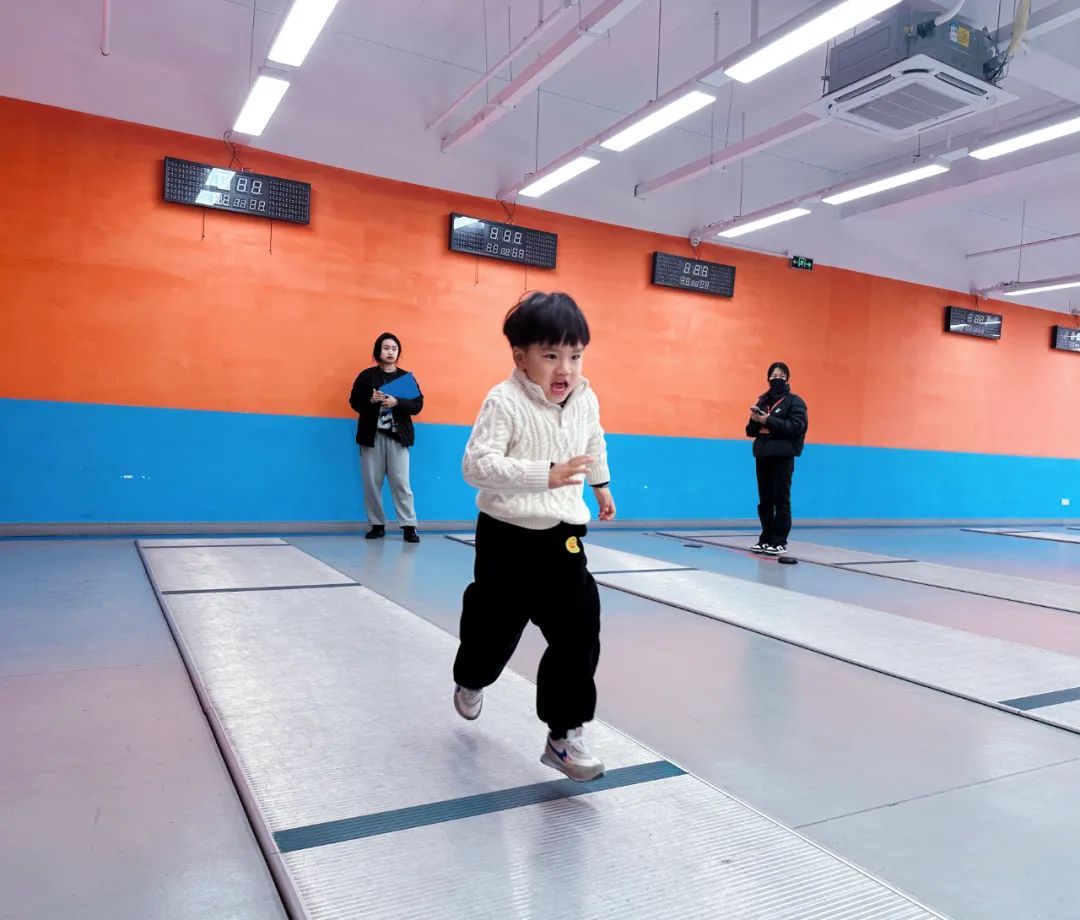 同一时间,位于轨交9号线松江新城站2楼的名剑体育馆内,另一群小朋友正在体能测试。立定跳远、高抬腿跳、往返跑步、横向移步……在各项运动综合测评之后,最终将有16名表现优异的孩子加入摩伦公益“少年击剑队”进行免费训练。