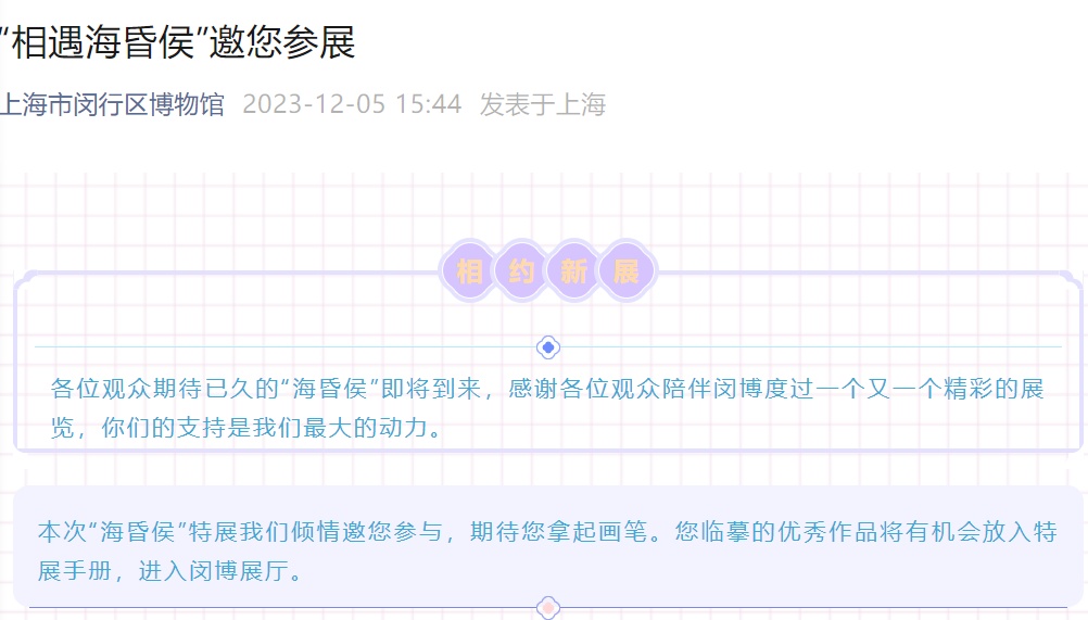 “汉代海昏侯刘贺墓出土文物特展”详细信息,请关注“今日闵行”后续报道哦。