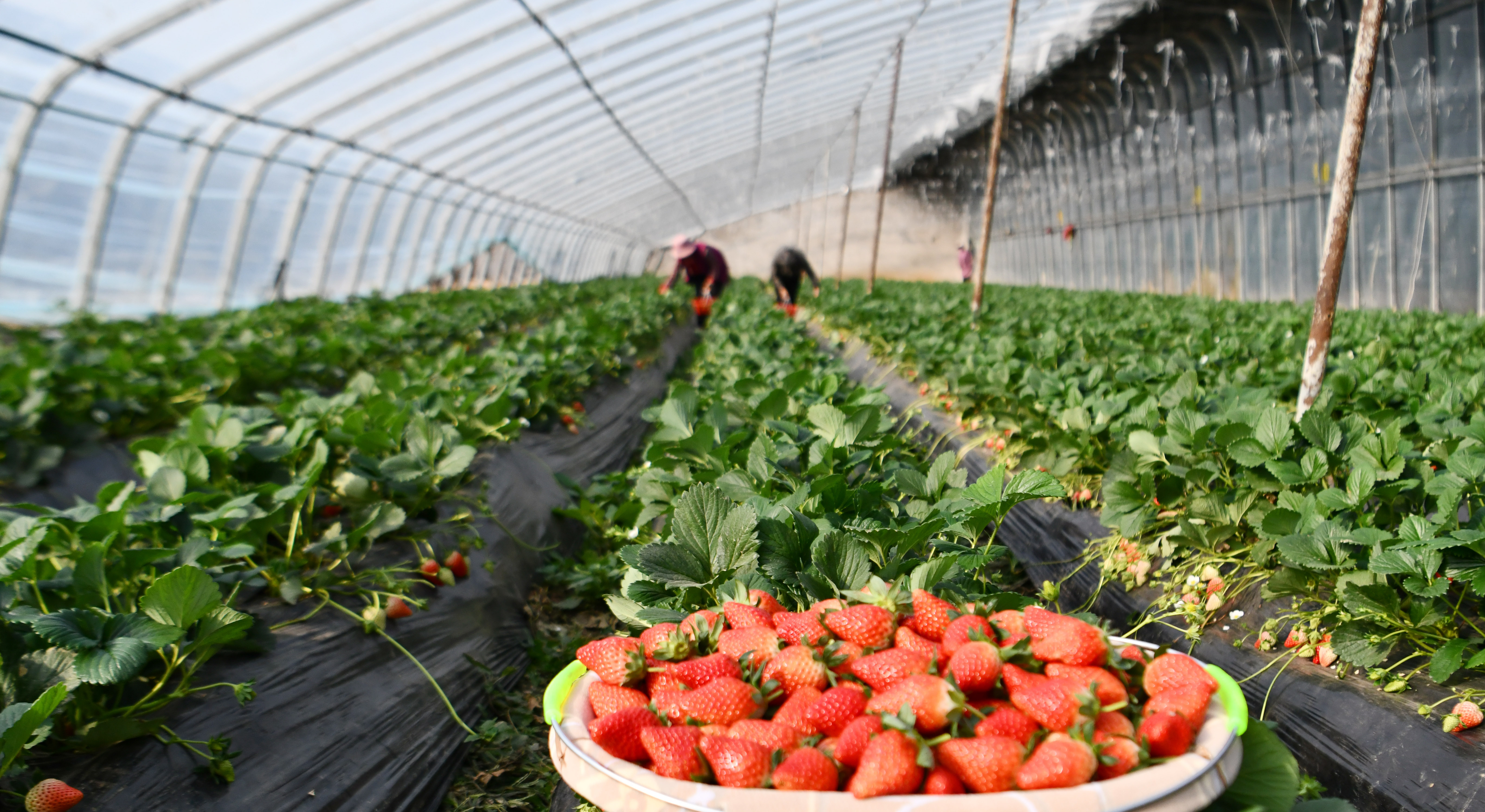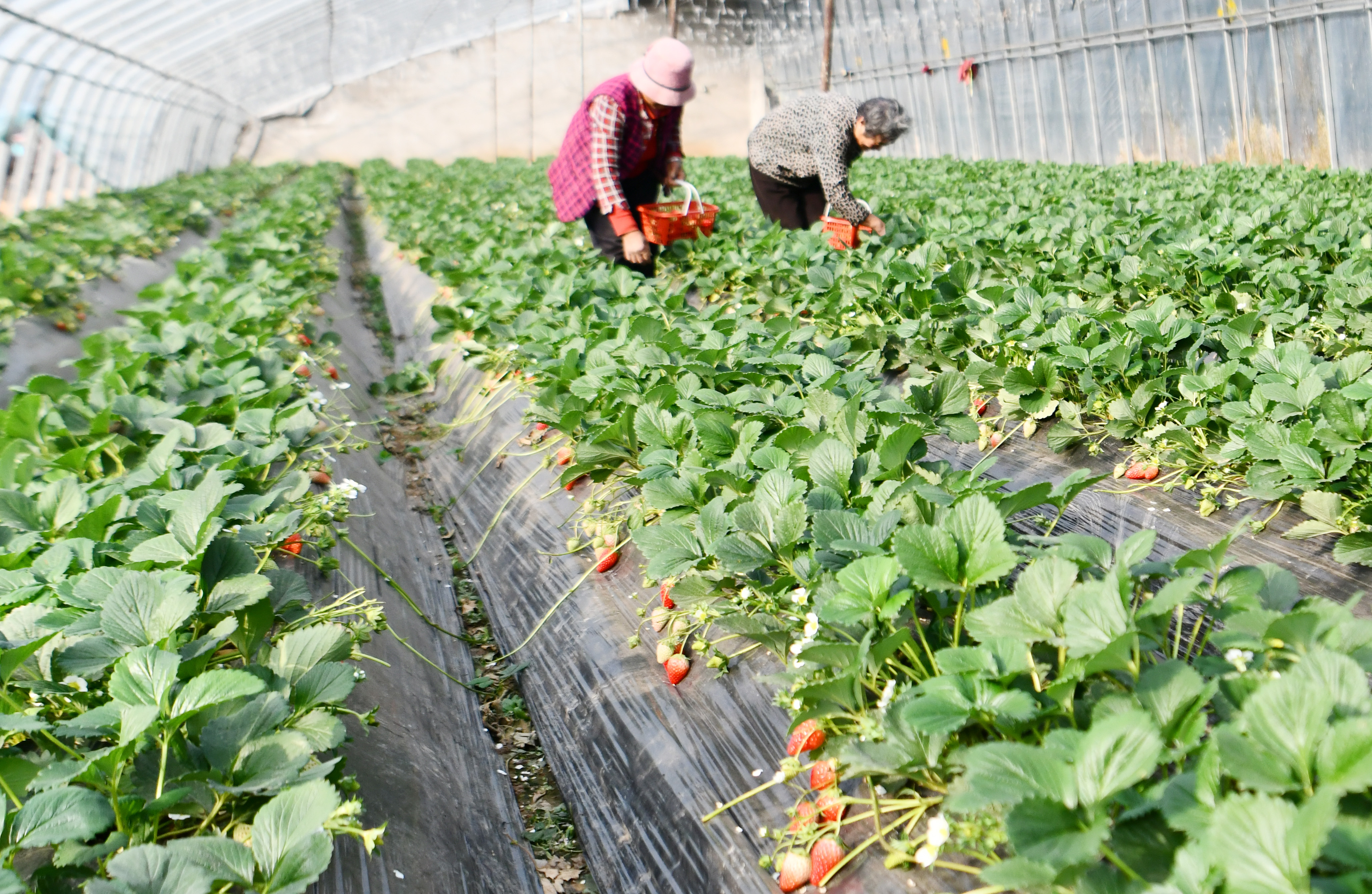 12月6日,在枣庄市台儿庄区马兰屯镇黄口村龙氏水果种植专业合作社的草莓大棚,农民正在采摘草莓。大雪节气将至,台儿庄区农民抢抓农时进行生产,确保冬季农业增产增收。(大众报业·大众日报客户端记者 张环泽 通讯员 贾礼章 李玉林 报道)